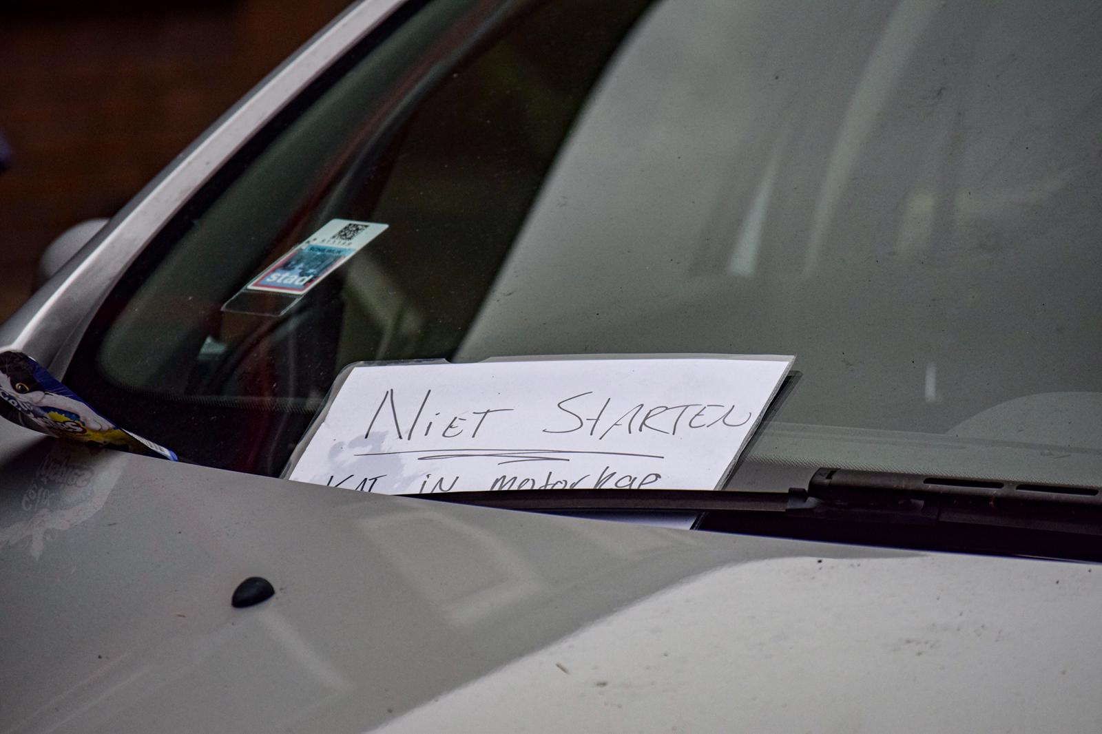 De Groninger brandweer kreeg rond 20.20 uur de melding van een dier in problemen waarop een bluswagen ter plaatse werd gestuurd. “De zoekactie naar kat Buddy was toen al enige tijd bezig”, vertelt Ten Cate. “De eigenaar wilde het beestje naar binnen halen maar wat ook geroepen werd, Buddy kwam niet tevoorschijn. Tot er op een gegeven moment gemiauw te horen was.” En dat geluid kwam onder de motorkap vandaan van een geparkeerde auto in de straat. “Het baasje van Buddy heeft eerst geprobeerd het dier er zelf uit te halen maar toen dat niet lukte werd er in allerijl een briefje onder de ruitenwissers gelegd met daarop de tekst ‘Niet starten, kat in motorkap’.