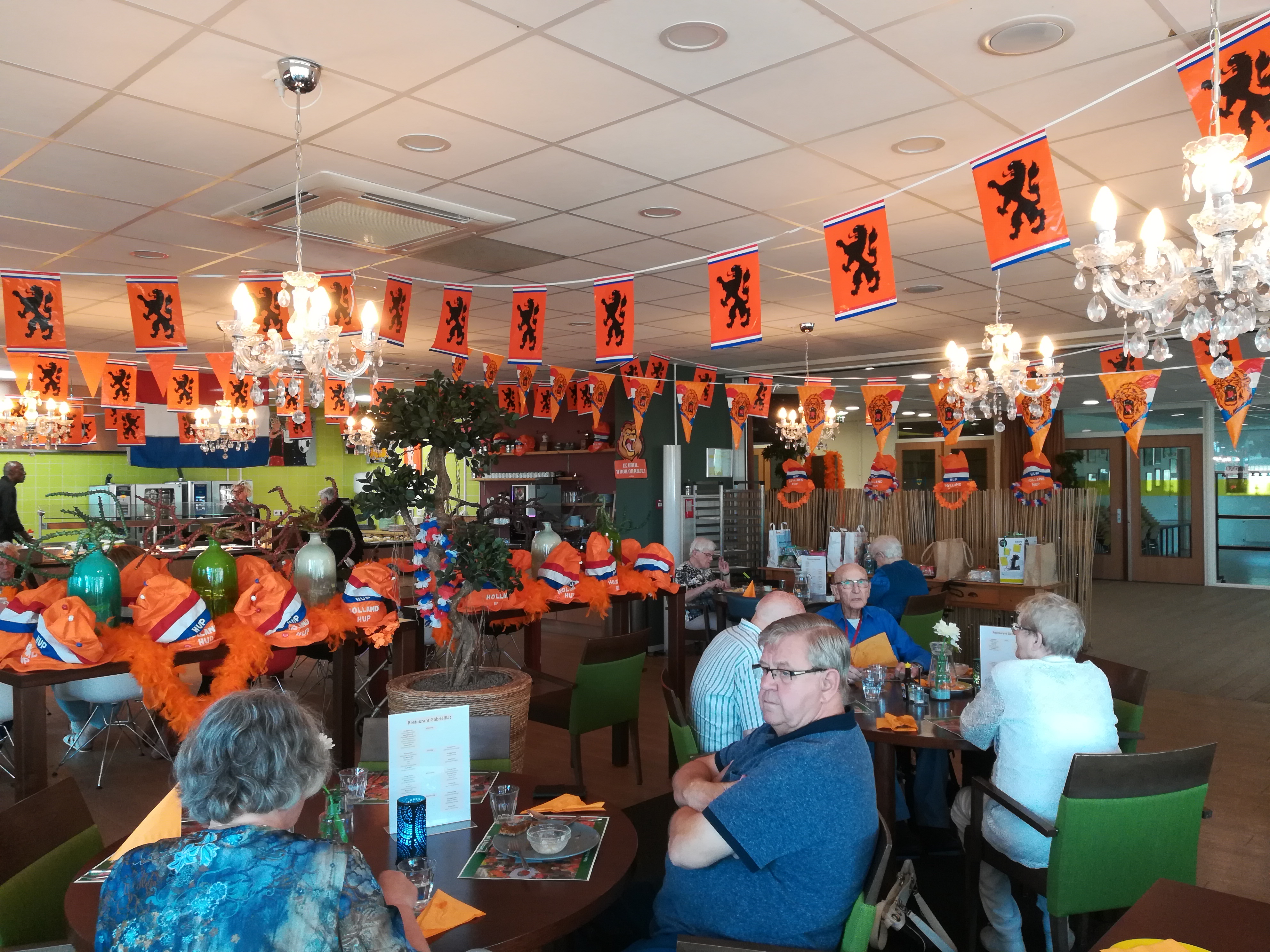 Compleet voorzien van een oranje menu konden de bewoners genieten van allerlei hapjes en drankjes. Nu Nederland het tot de halve finale heeft geschopt, is de vraag natuurlijk of de dames vanavond doorgaan naar de finale van aanstaande zondag. Volgens restauranteigenaar Pieter van Delden is daar geen twijfel over mogelijk. Hij hoopt het hele restaurant zondag weer vol oranje gezelligheid te zien.
