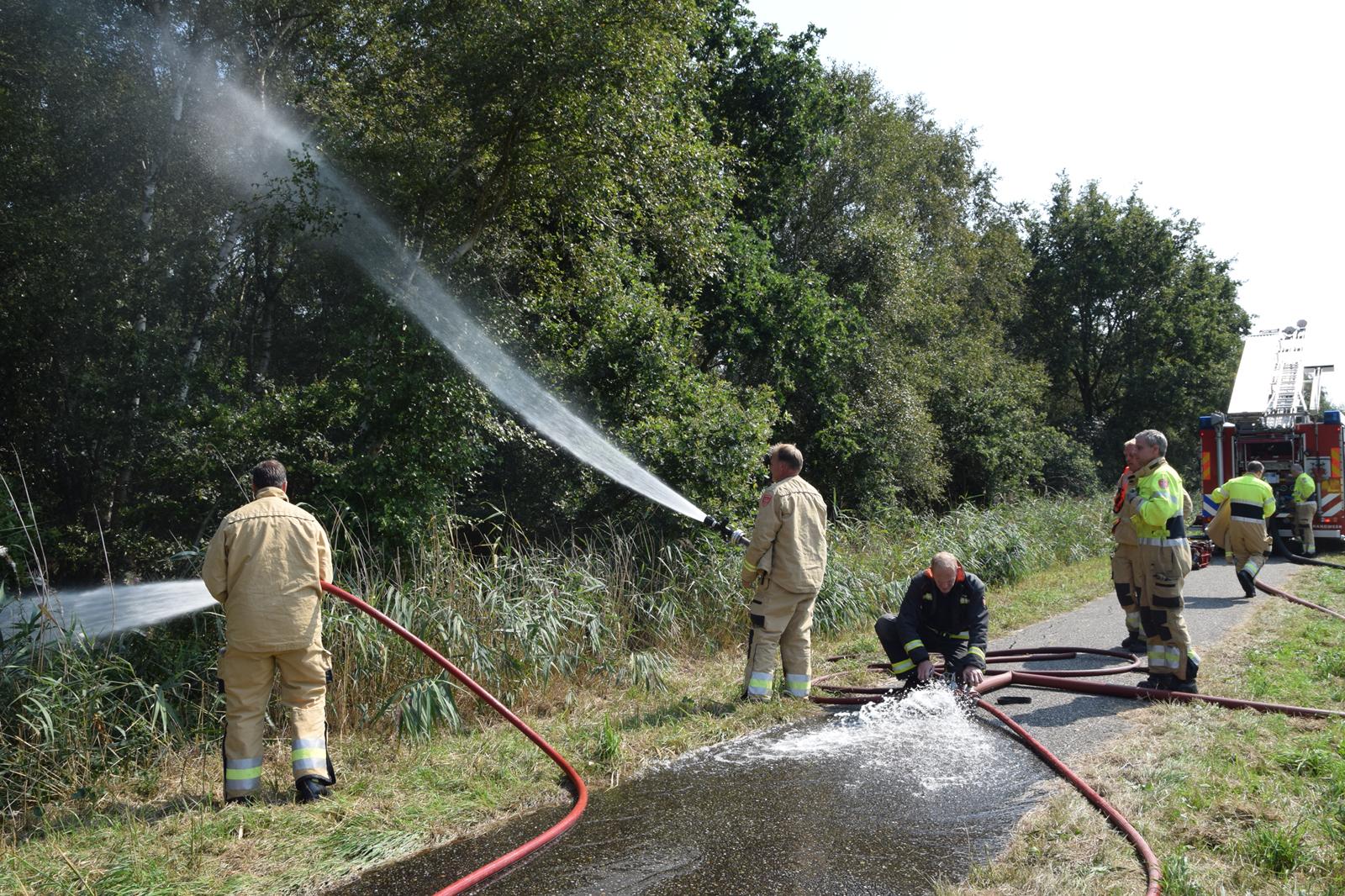 De brand werd gemeld rond 13.30 uur. “Het zijn een aantal bosschages die in brand staan”, vertelt Ten Cate. “De brand woedt langs het fietspad dat parallel loopt aan het Noord-Willemskanaal. De Harense brandweer is op dit moment ter plaatse en blust de brand met twee stralen hogedruk. Het bluswater pompt men uit het kanaal.”