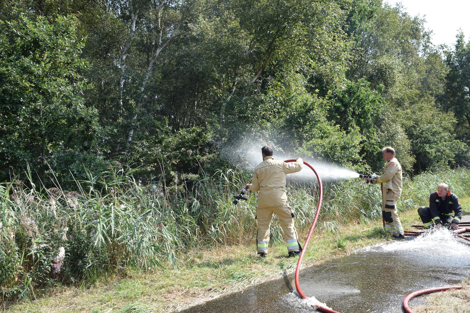 De brand werd gemeld rond 13.30 uur. “Het zijn een aantal bosschages die in brand staan”, vertelt Ten Cate. “De brand woedt langs het fietspad dat parallel loopt aan het Noord-Willemskanaal. De Harense brandweer is op dit moment ter plaatse en blust de brand met twee stralen hogedruk. Het bluswater pompt men uit het kanaal.”