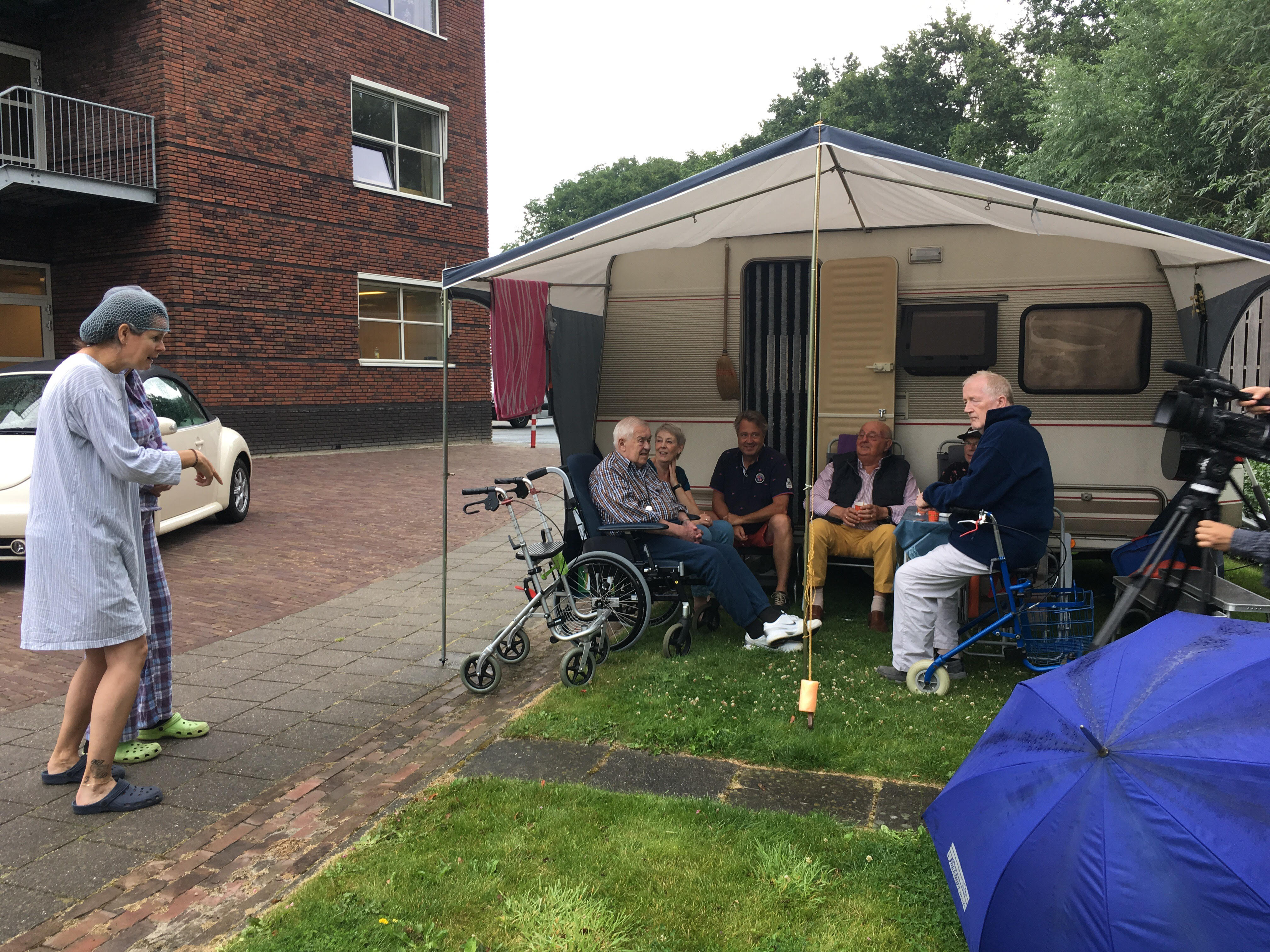 Medewerkers van woonzorglocatie De Dilgt in Haren toverden de achtertuin van het gebouw vrijdag voor een dag om tot een camping. Zo konden alle bewoners toch nog een beetje genieten van een vakantiegevoel.