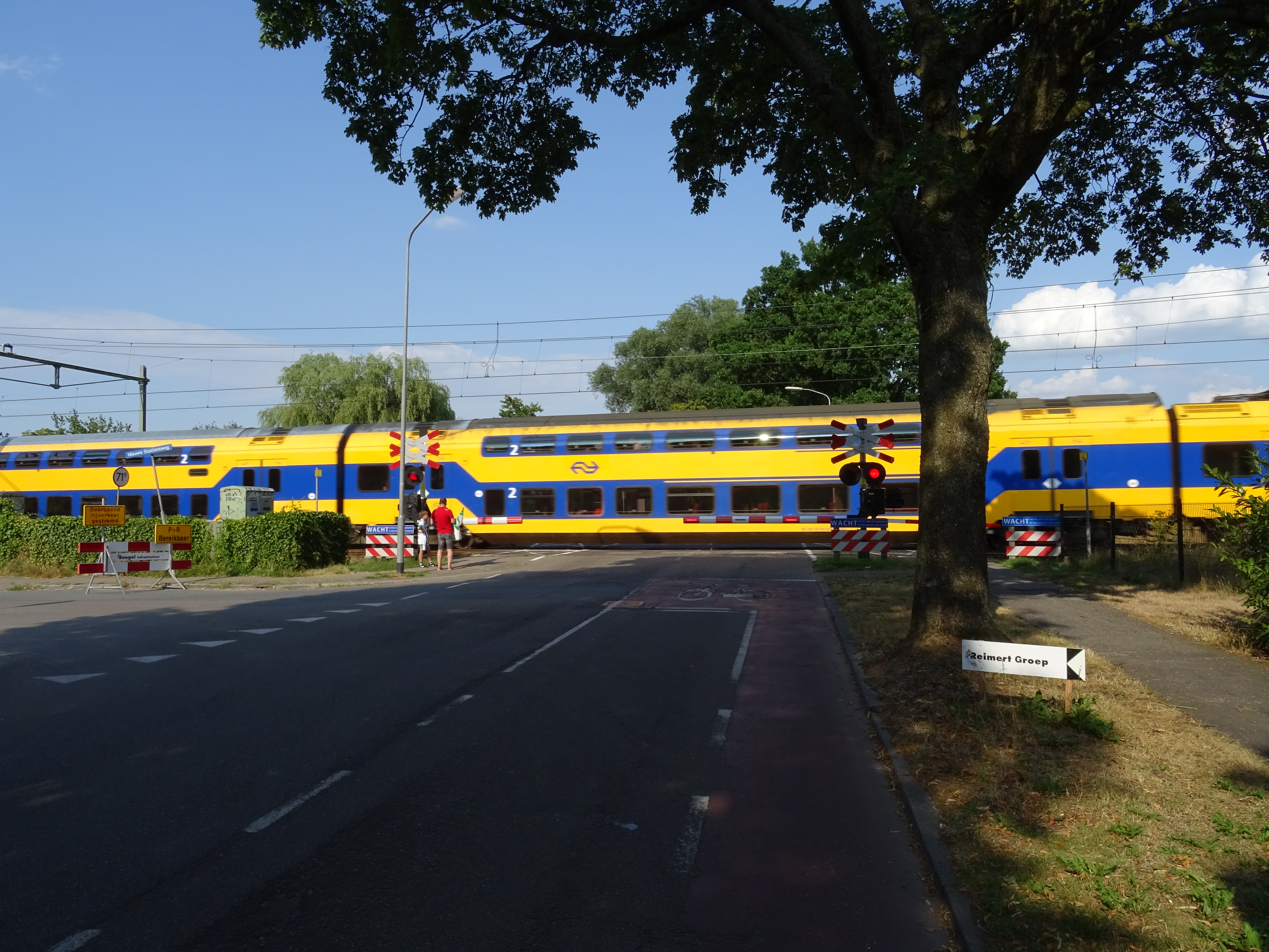 Foto Andor Heij: Trein, spoorwegovergang,Haren