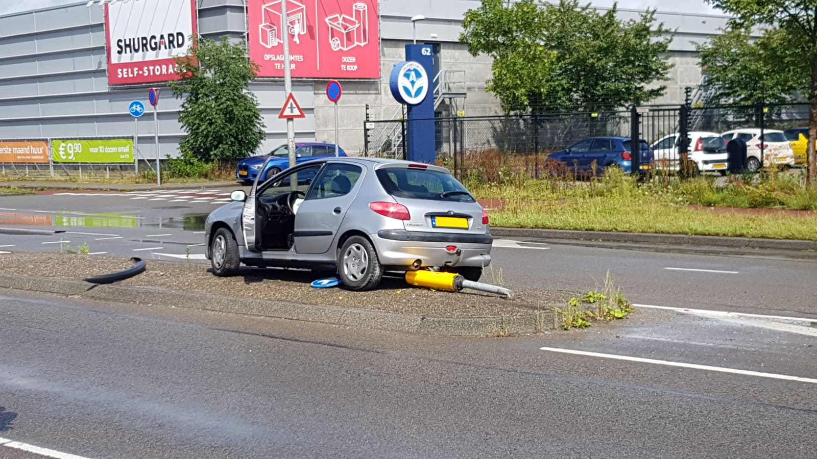 Een personenauto is donderdag even na het middaguur aan de Bornholmstraat op een vluchtheuvel gebotst. Daarbij is één persoon gewond geraakt.