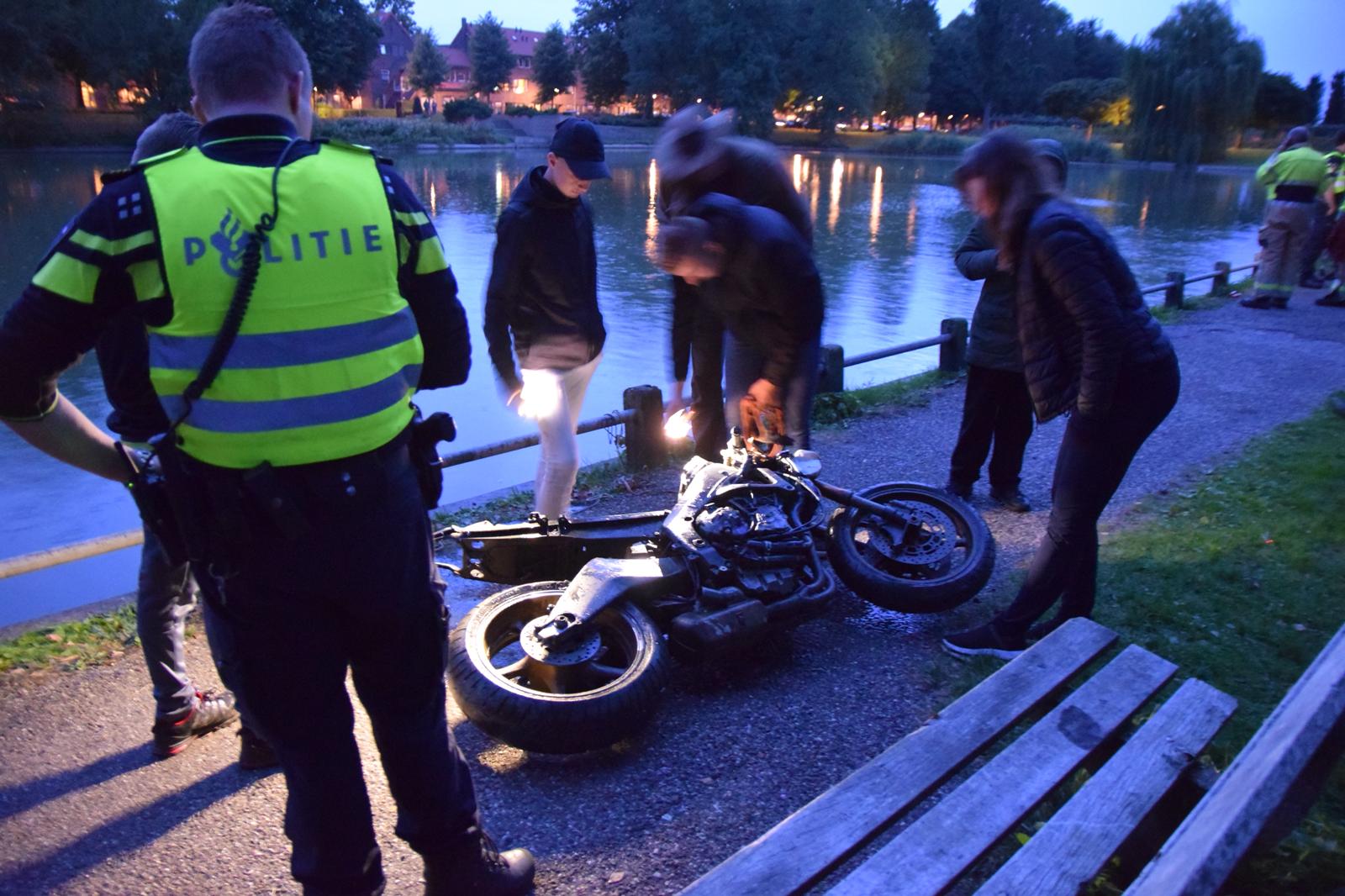 Magneetvissers hebben woensdagavond in een vijver aan de Pioenstraat bij het Pioenpark een gestripte motor aangetroffen. Dat meldt Rick ten Cate van de incidentenwebsite tencatefotografie.nl.