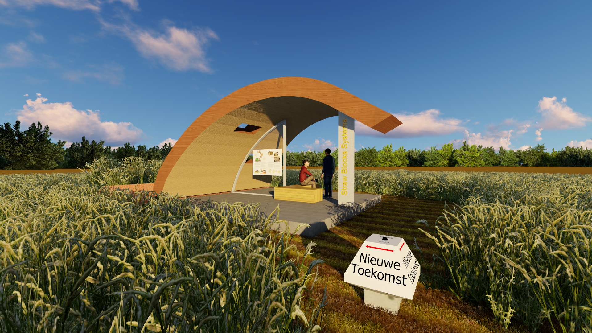 Het paviljoen bevindt zich in de bouwinnovatieproeftuin van BuildinG op de Zernike Campus. Het Stropaviljoen laat zien dat je met stro vormvrij, sterk en modern kunt bouwen. Straw Blocks Systems bouwt lego-achtige geprofileerde blokken met bewerkte ruwe strobalen. De stroblokken worden in een licht houten frame verwerkt tot prefab elementen voor gevel, vloer, dak en binnenwanden. Ze hebben een hoge isolatiewaarde.