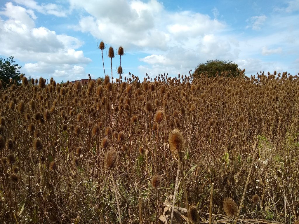 ‘Aan de oostkant van het Reitdiep hebben wij een akker ingezaaid met kaardebollen, korenbloemen en bolderik. Goed voor insecten én putters, want dat zijn de enige vogels die bij het zaad van de kaardebollen kunnen komen’.