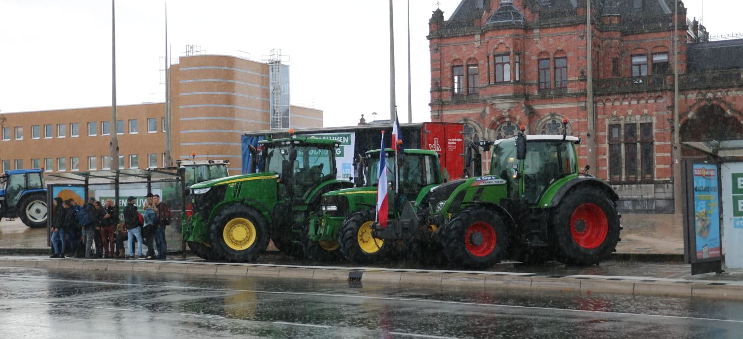 Dinsdagmiddag delen boeren broodjes uit aan voorbijgangers op het Hoofdstation in Groningen. Ze geven daarmee steun aan de demonstrerende boeren in Den Haag. Uiteraard komen ze op de tractor en die moet geparkeerd worden.