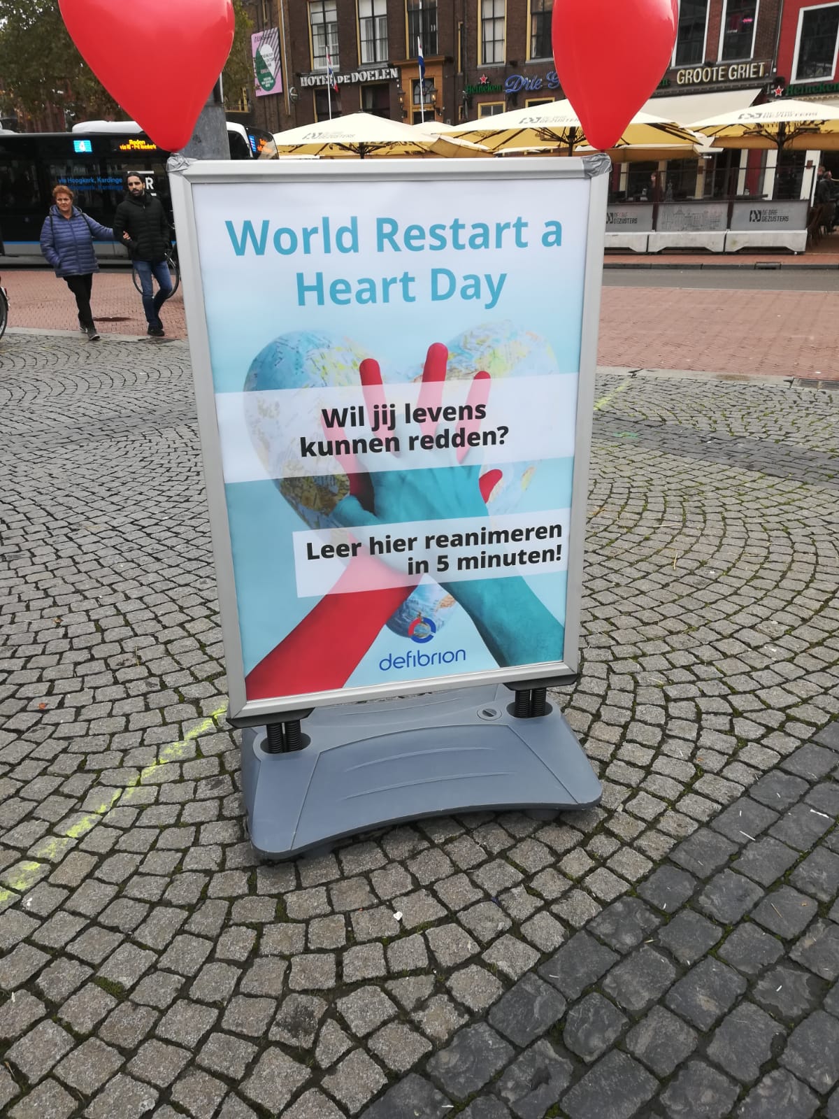 Voorbijgangers op de Grote Markt konden woensdag leren reanimeren tijdens ‘World Restart a Heart Day.’ Op deze internationale dag wordt aandacht gevraagd voor het belang van reanimatie. Met behulp van trainer-AED’s en speciale reanimatiepoppen kon het publiek tijdens de gratis workshops leren hoe je zo snel mogelijk actie onderneemt in het geval van een hartstilstand.