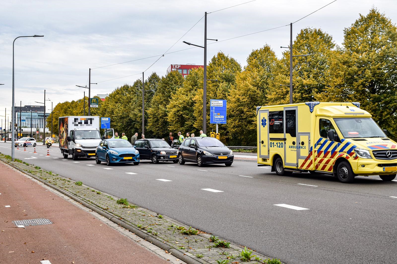 Het ongeluk gebeurde rond de klok van 11.00 uur. “Vier auto’s kwamen met elkaar in botsing”, vertelt Ten Cate. “Hoe dit kon gebeuren is nog onbekend.” Hulpdiensten waren snel ter plaatse. Behalve de politie en een ambulance werd ook de brandweer opgeroepen maar zij hoefden niet in actie te komen. “Drie rijbanen werden afgesloten. Een mevrouw bleek gewond te zijn geraakt. Nadat zij ter plaatse behandeld was, is ze met onbekende verwondingen overgebracht naar het ziekenhuis.”