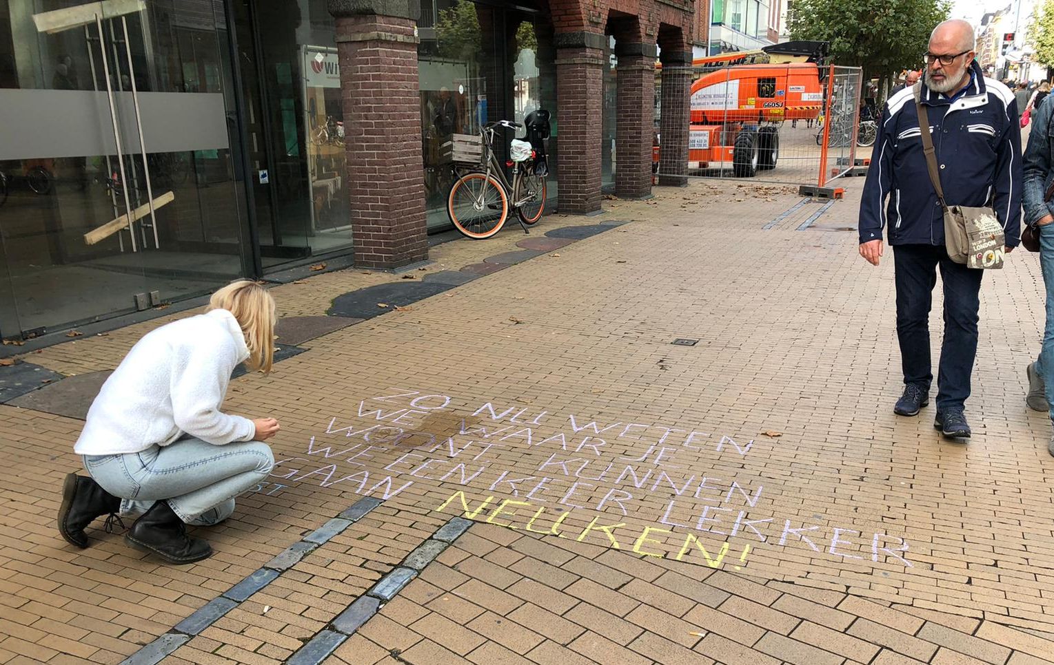 Roos de Boer is twee maanden geleden begonnen met een actie tegen het zogenaamde ‘cat-calling’, het naroepen van en fluiten naar mensen op straat. Op sociale media roept ze Groningers op om de dingen die naar ze geroepen worden met haar te delen. Dit schrijft ze dan met krijt op de plek waar dat gebeurde.
