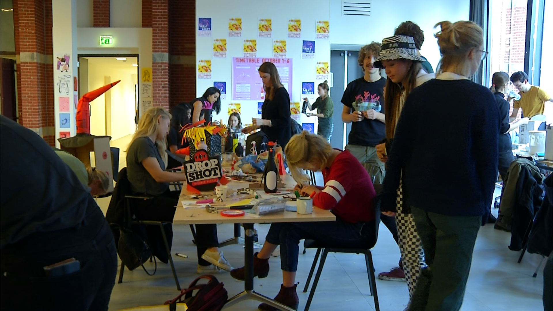 De workshop werd gegeven, omdat deze week het illustratiefestival plaatsvindt. Dit creatieve festival is georganiseerd door studenten van Academie Minerva aan de Praediniussingel. Het grootste doel is om samen kunst te maken. ‘Over het algemeen ben je te serieus bezig met je eigen kunst en het is gewoon gezellig om met mensen in een zaal gewoon een beetje te knutselen,’ zegt striptekenaar Wasco.