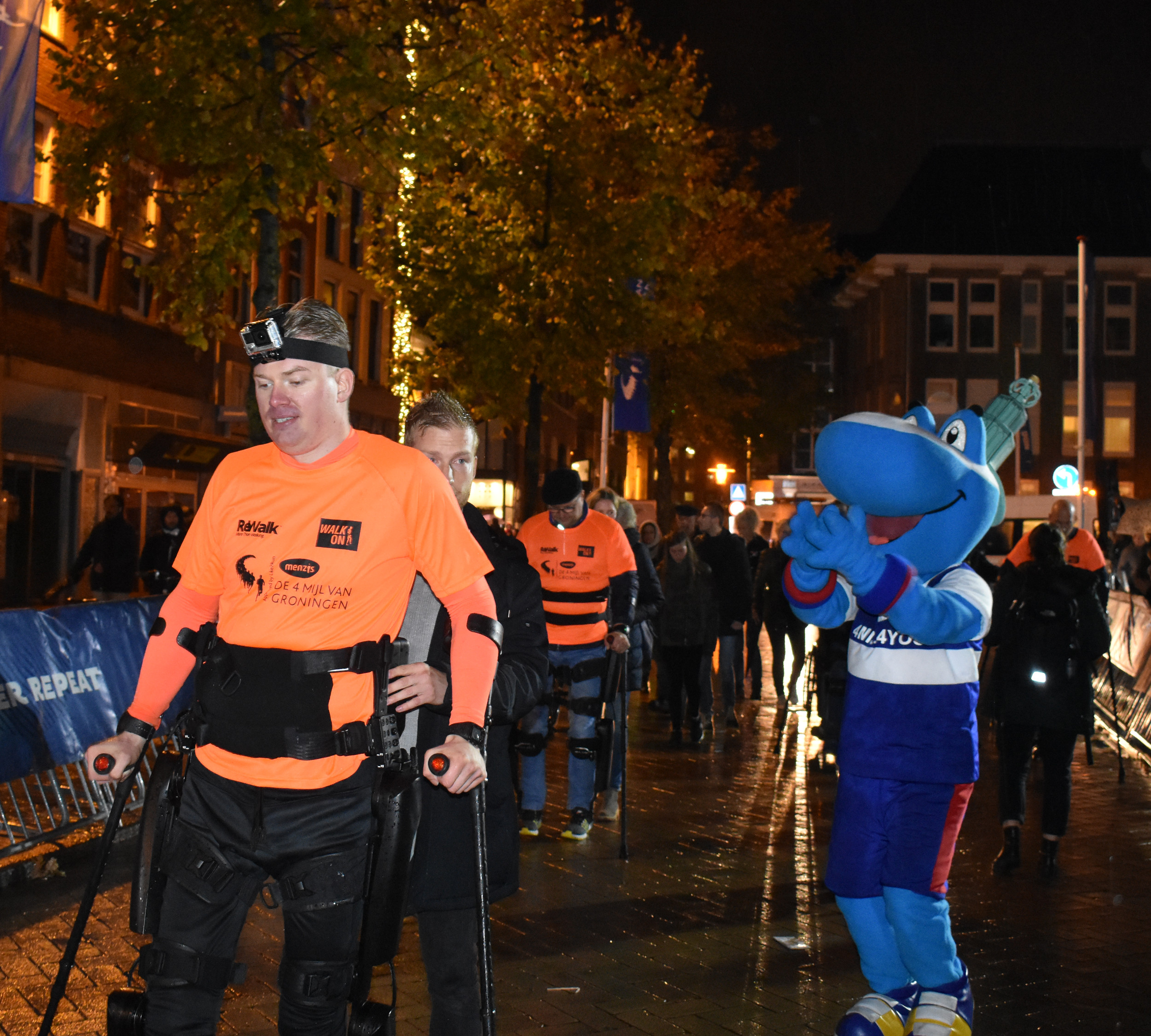 Het goede doel was dit jaar de stichting Walk On. dat zich inzet om mensen met een dwarslaesie weer te laten lopen. Dennie, ambassadeur van de stichting, liep zelf onder begeleiding van fysiotherapeuten samen met vijf andere “rewalkers” de laatste 500 meter naar de finish met behulp van het exoskelet. (foto)