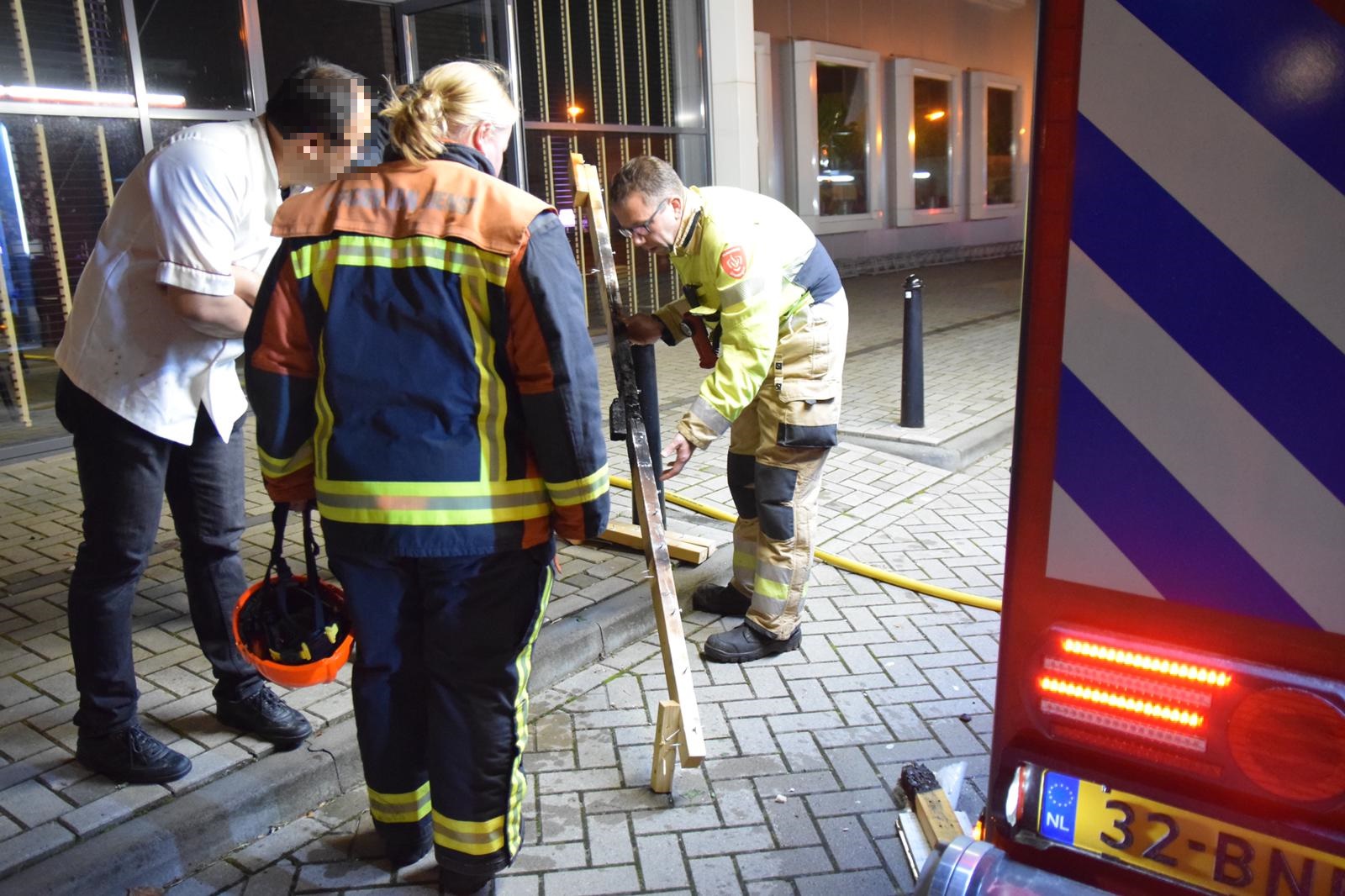 De melding van een gebouwbrand kwam rond 21.30 uur bij de brandweer binnen die daarop uitrukte met een bluswagen en een hoogwerker. “Alle mensen die zich in het gebouw bevonden staan buiten”, vertelt Ten Cate die kort na de brandweer ter plaatse kwam. “De hoogwerker is zojuist in positie gebracht waarmee brandweerlieden nu een controle uitvoeren op het dak.” Na onderzoek bleek dat er een brandje had gewoed bij een pizza-oven. “Hout of hout-materialen hadden vlam gevat. De brandweer heeft dit weggebroken. Het vuur was vervolgens snel onder controle.”