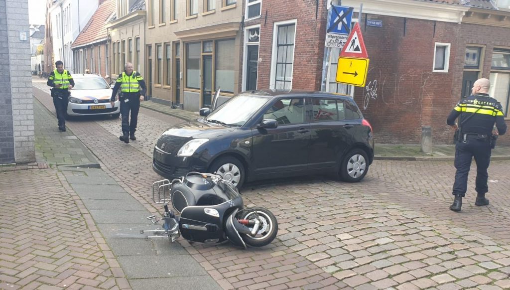 Een scooterrijder raakte dinsdagmiddag gewond bij een aanrijding met een auto in de Pausgang.