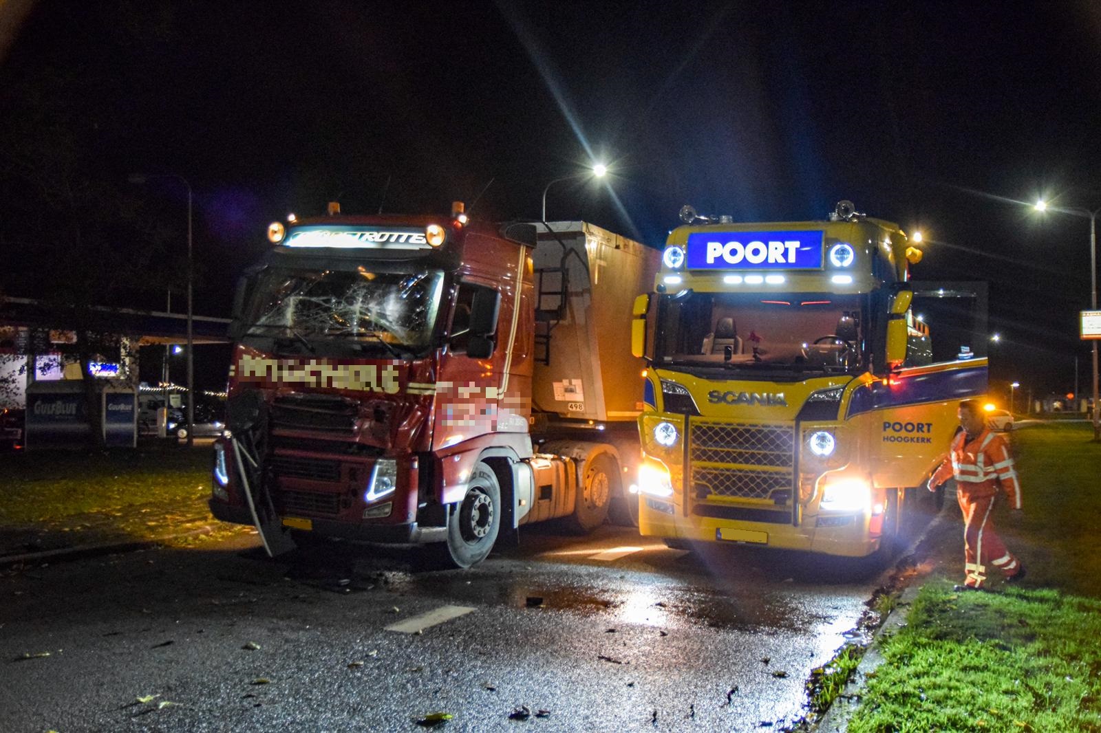 Het ongeluk gebeurde rond 19.15 uur ter hoogte van de kruising met de Atoomweg. “Twee bietenwagens reden achter elkaar”, vertelt Ten Cate. “Door nog onbekende oorzaak moest de voorste vrachtwagen opeens remmen. De bestuurder van de tweede wagen zag dit te laat waardoor hij bovenop zijn voorrijder botste.” Volgens Ten Cate is er niemand gewond geraakt, maar is de schade wel groot.