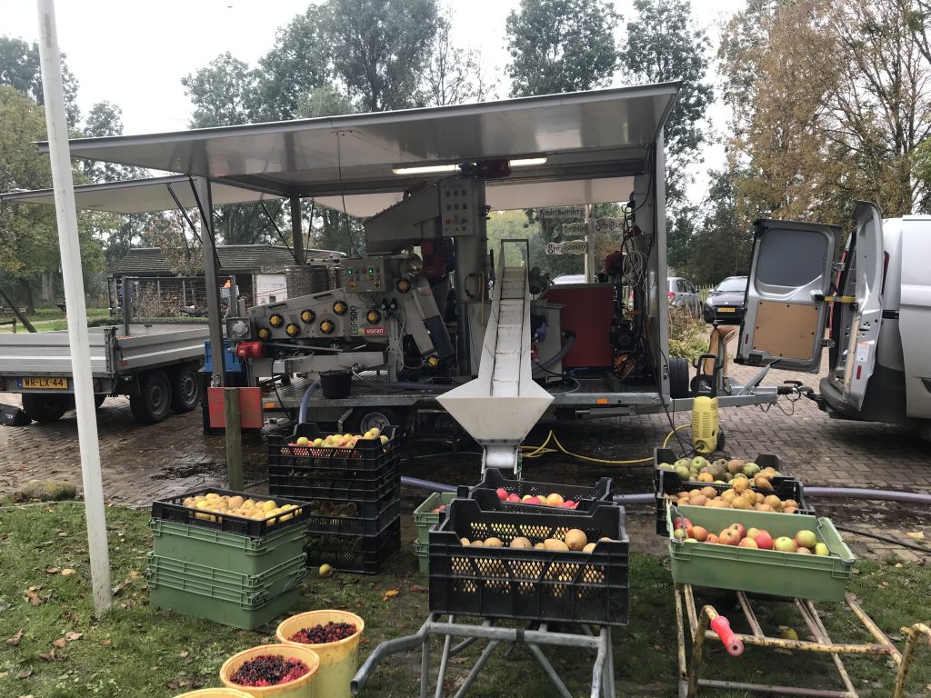 Elk jaar heeft zorgboerderij de Mikkelhorst in Haren een overschot aan fruit. Daarom perste de Mikkelhorst dinsdagmiddag hun eigen fruit tot een heerlijk sapje.