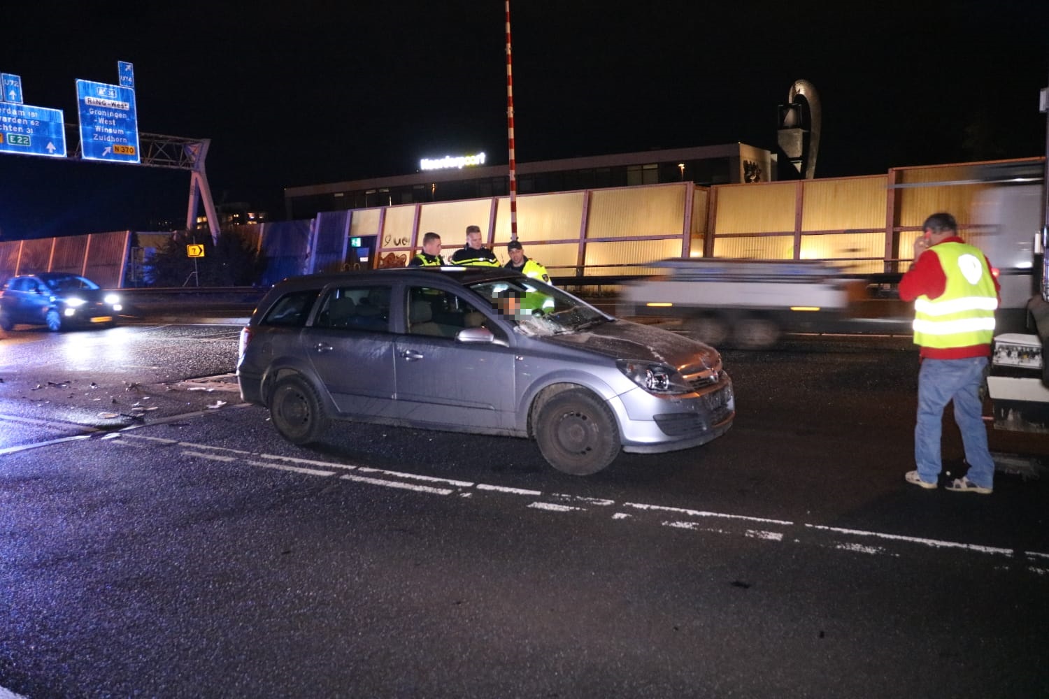 De politie doet onderzoek naar de precieze toedracht. Een bergingsbedrijf heeft de auto weggesleept.