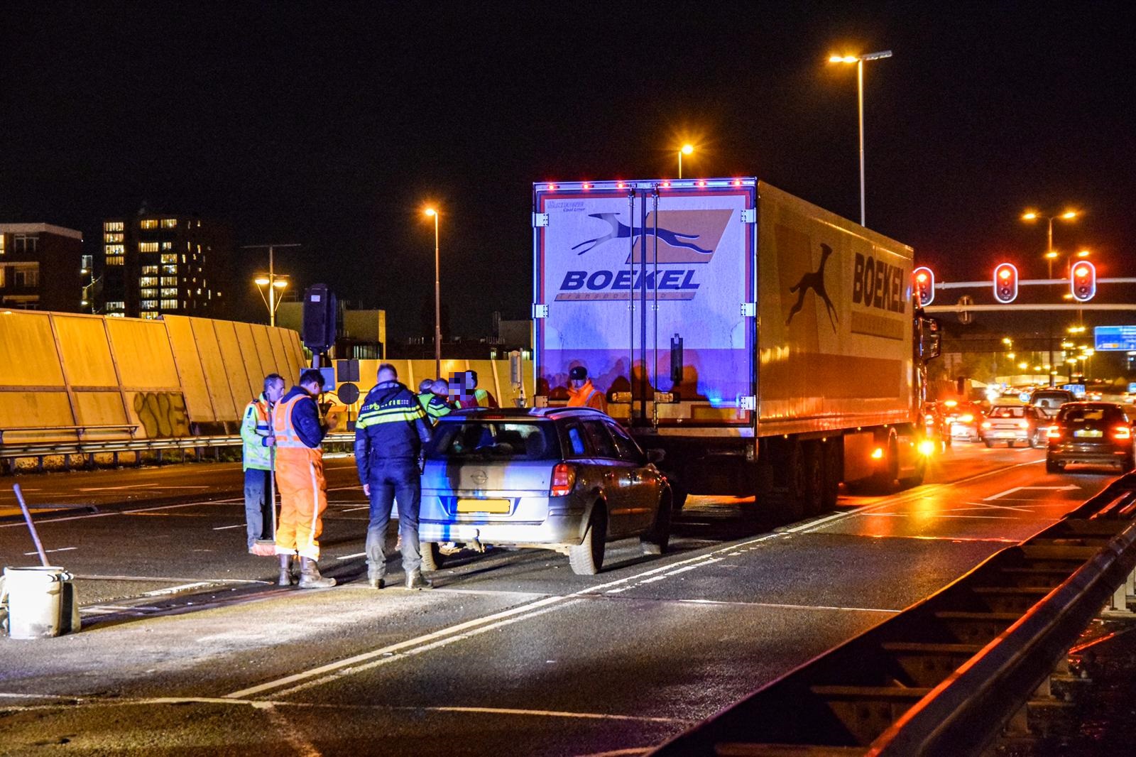 Het ongeluk gebeurde rond 20.15 uur. Door nog onduidelijke oorzaak botste de bestuurder van een personenwagen achterop de vrachtwagen. Niemand raakte gewond. Wel ontstond er schade, en om daarnaast de hulpverleners een veilige werkruimte te creëren, werd één van de rijstroken tijdelijk afgesloten.