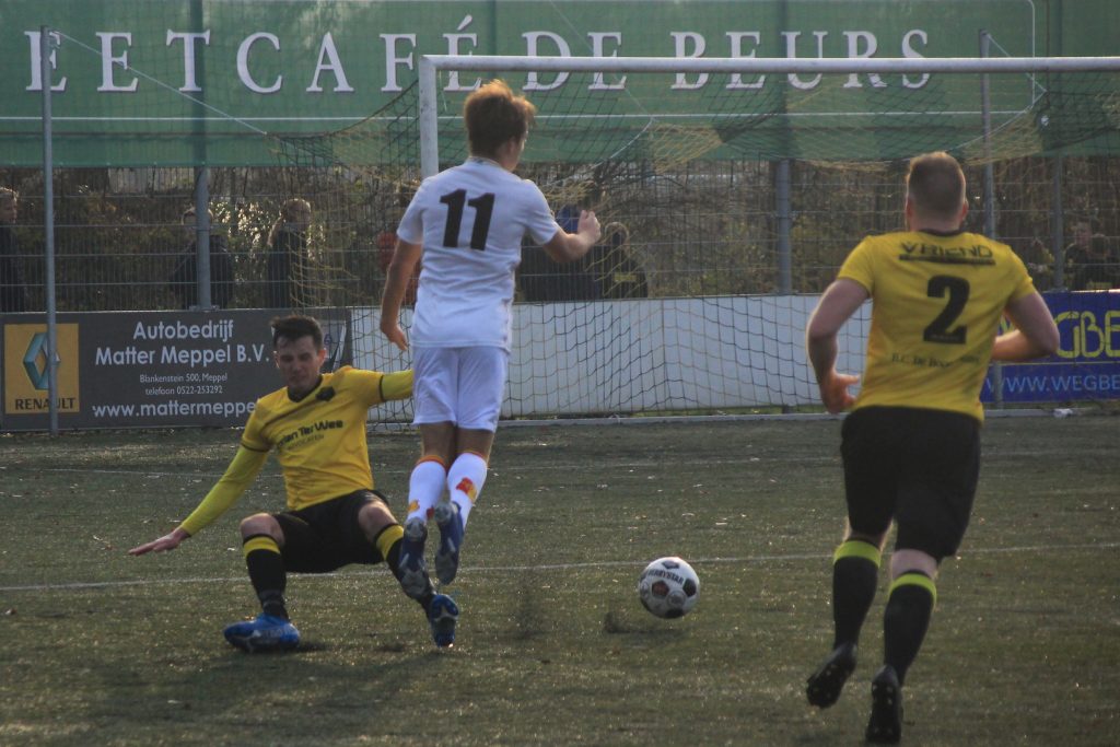 Na de pauze kreeg Bentum drie goede kansen, maar stuitte steeds op Alcides doelman Xander Jager. Zijn ploeggenoten Wilco van der Kooi, met een schot in de verre hoek, en Daniel Teune vanuit een vrije trap scoorden wel. Nick Kuiper maakte er vlak voor tijd namens Alcides 5-1 van.