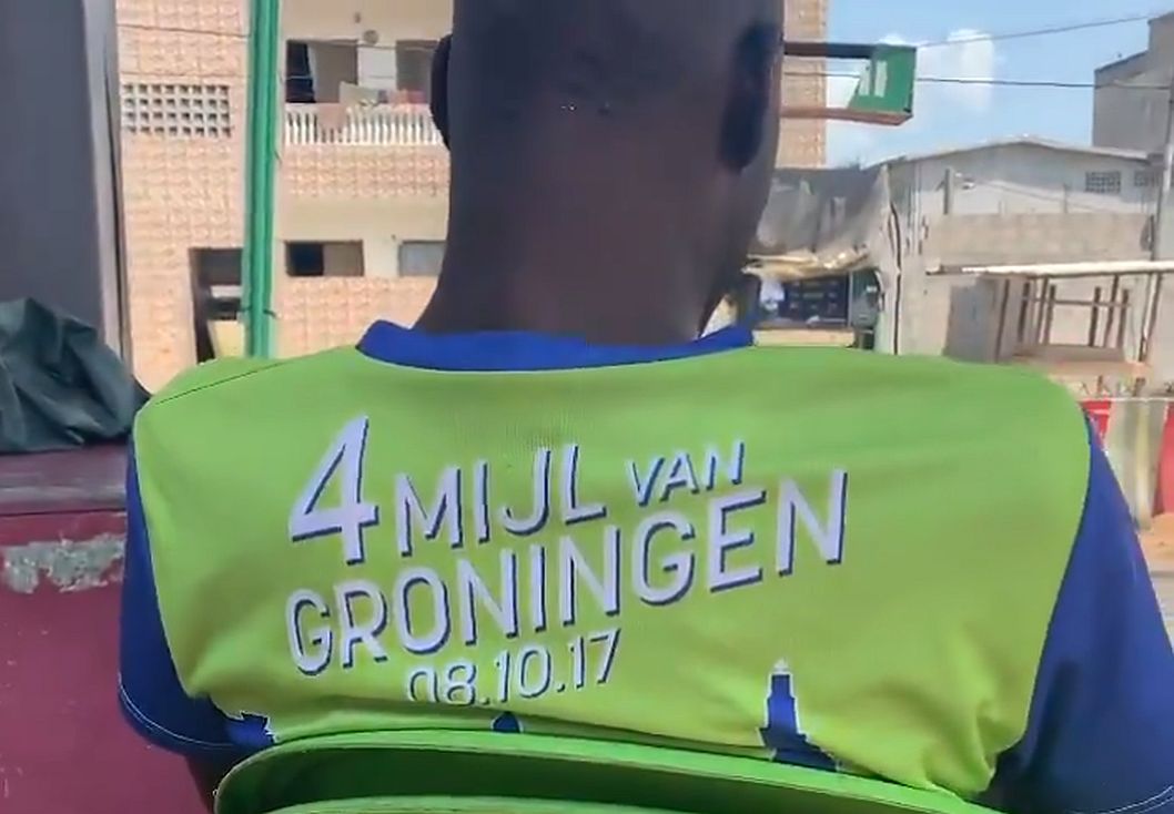 De sbs6-presentator is in Afrika voor de opnames voor een reportage over een ‘sextortion’-zaak. Bij een willekeurig pompstation spotte hij het shirt van de 4Mijl uit 2017: “Er gaat zelfs in Afrika niets boven Groningen,” zo schrijft Van Der Spek.