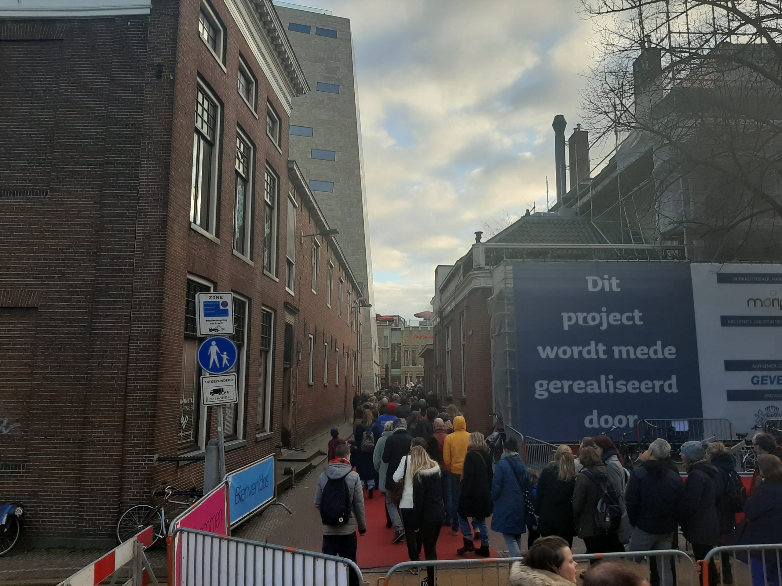“De rij is nog langer dan net”, aldus een jonge vrouw. Toch neemt ze met haar gezelschap plaats bij de honderden, misschien wel duizend wachtenden om een kijkje te nemen in Forum Groningen in het hart van de stad. 21 duizend mensen kwamen uiteindelijk binnen.