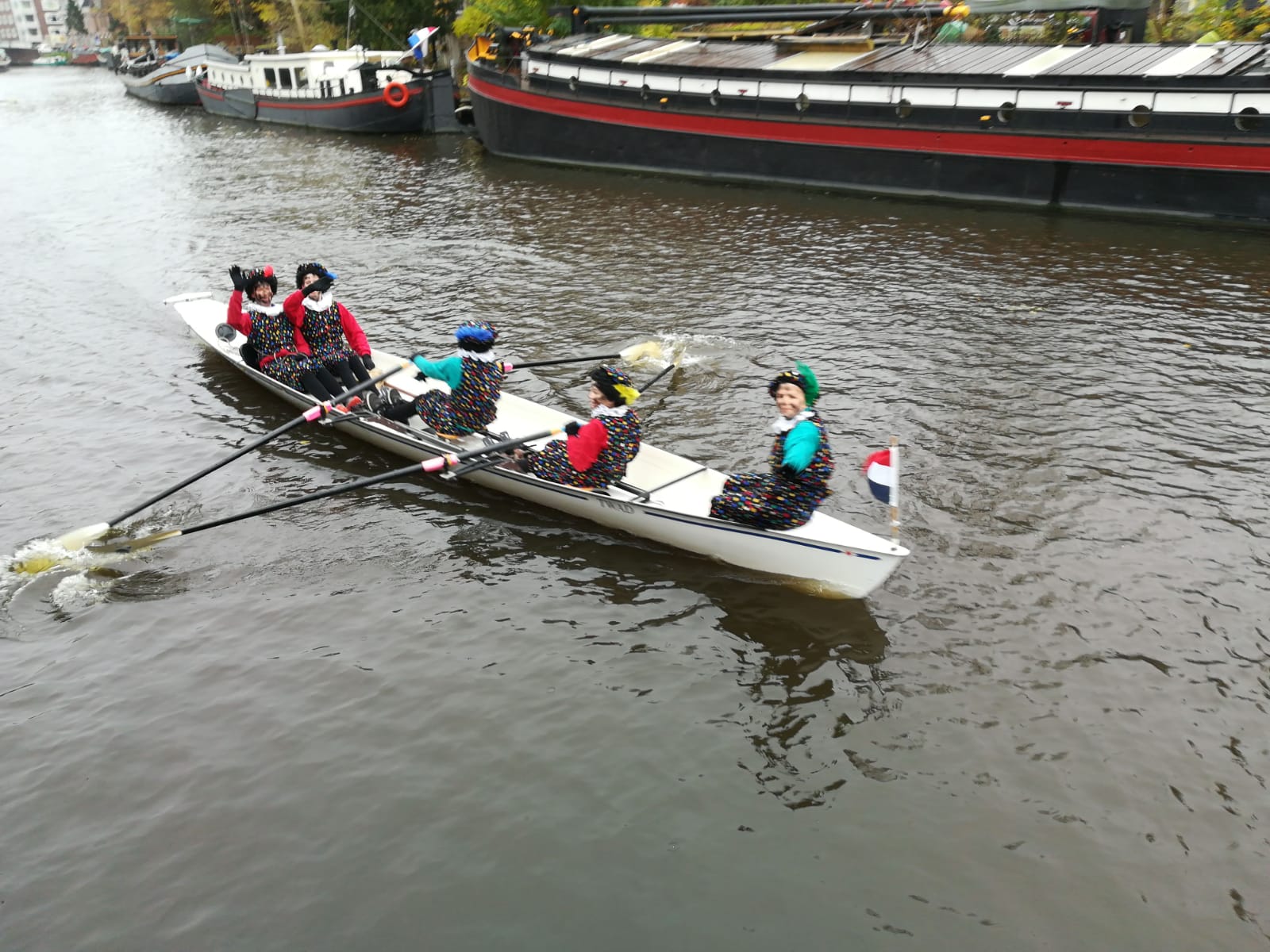 Op de Wilhelminakade gaat ondertussen het feest onverstoord verder. “Zojuist voer hier een boot langs met een compleet Pietenorkest”, ziet verslaggever Ecco van Oosterhout. De boten zijn onderweg richting roeivereniging De Hunze waar ze rond 13.30 uur arriveren. Daar gaat Sinterklaas ook voet aan wal zetten.