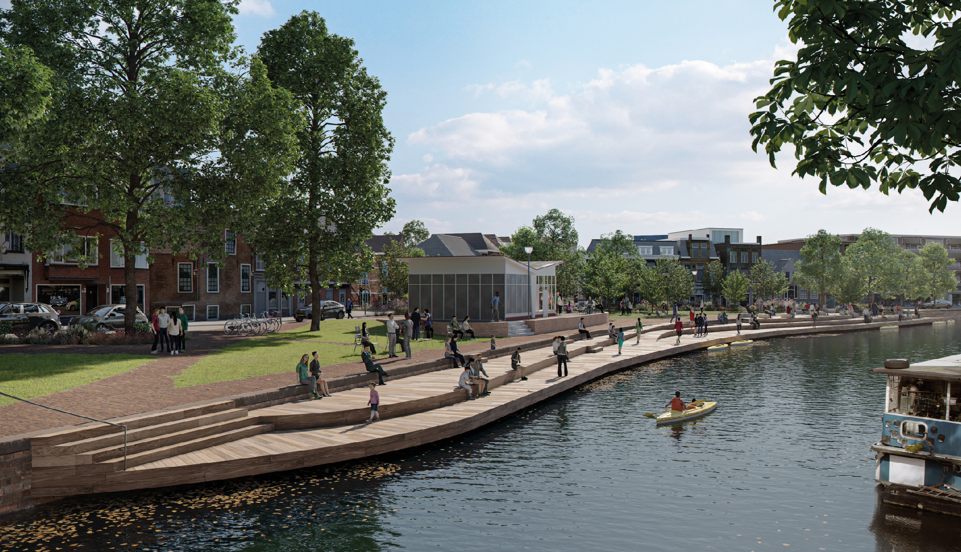 Ook geen ruimte creeren voor het aanmeren van boten, het wordt dan al heel snel een circus. Volgens mij is er veel meer behoefte aan rustige plek aan het water, zonder gedoe, zonder commercie en zo rustig mogelijk.