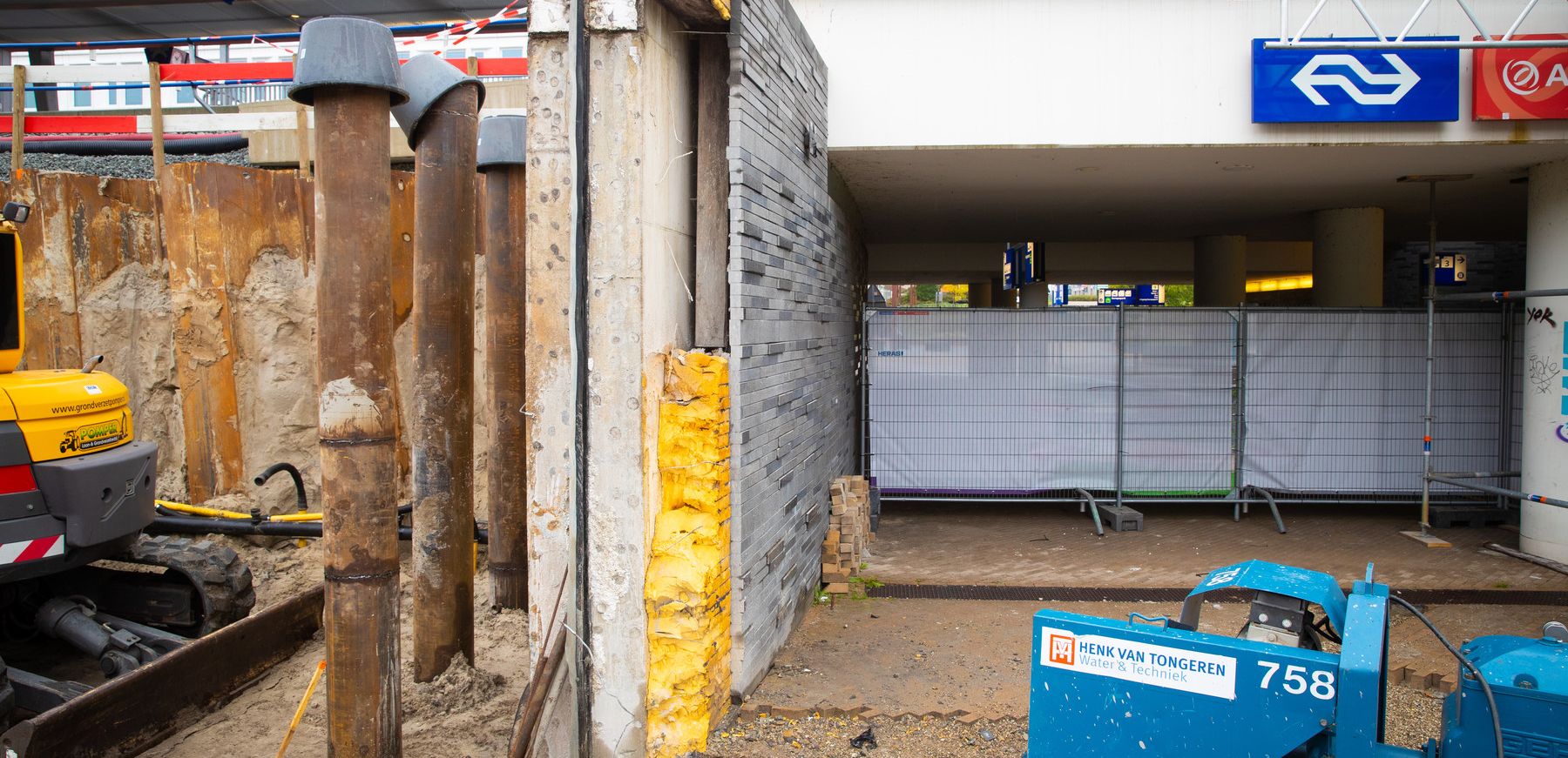 Om het extra perron op station Groningen Europapark te kunnen bouwen moet het tunneldek van de tunnel bij het station breder worden gemaakt. De funderingspalen voor de landhoofden van het tunneldek staan er inmiddels.