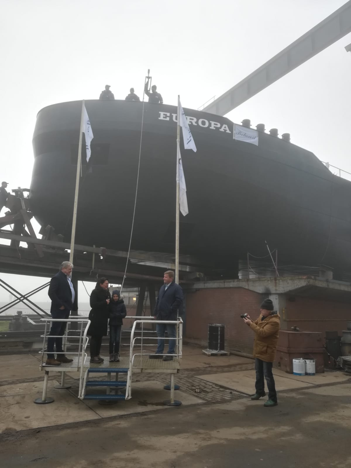 Woensdagmiddag 20 november is in Waterhuizen het 110 meter lange schip ‘Europa’ te water gelaten. Het was aardig mistig maar gelukkig konden we toch een glimp van de tewaterlating opvangen.