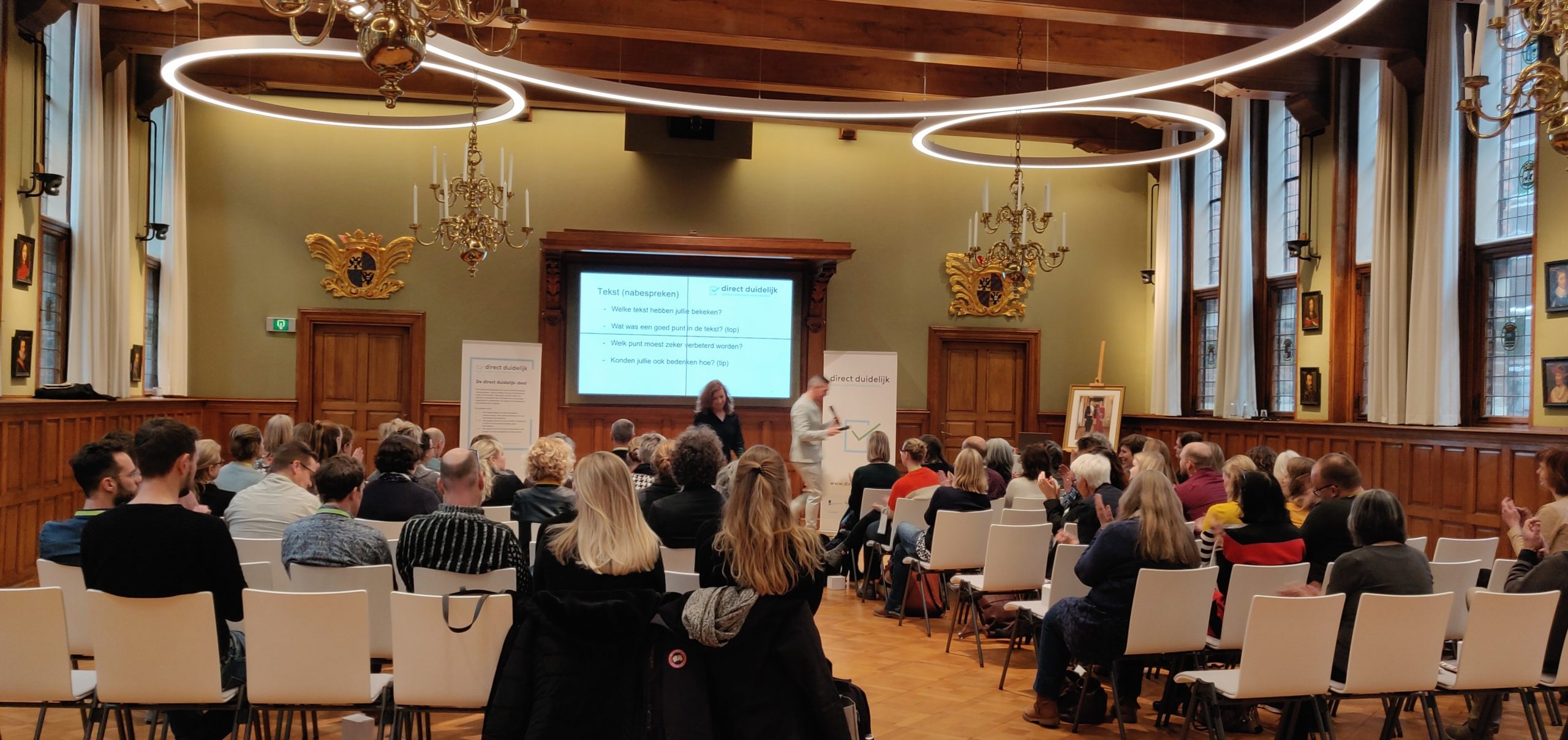 De cursus, ‘Direct Duidelijk’, is er op gericht om overheidsmedewerkers duidelijker te laten communiceren. En om dat flink te verbeteren, kwamen de werknemers samen om te praten over reclame, beeldgebruik en tekst. De deelnemers mochten elkaars teksten en beelden bekijken en bekritiseren.