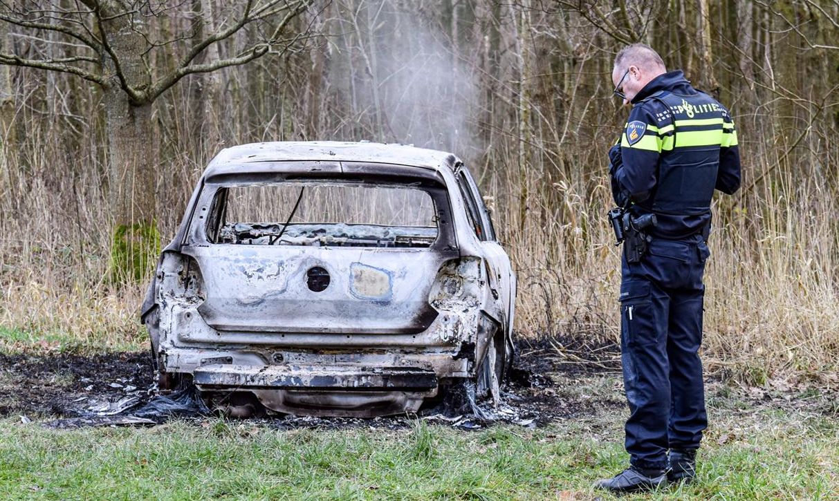 Aan de Jensemaheerd in Beijum, nabij het Natuurgebied Kardinge, is dinsdagochtend een auto door brand in de as gelegd.