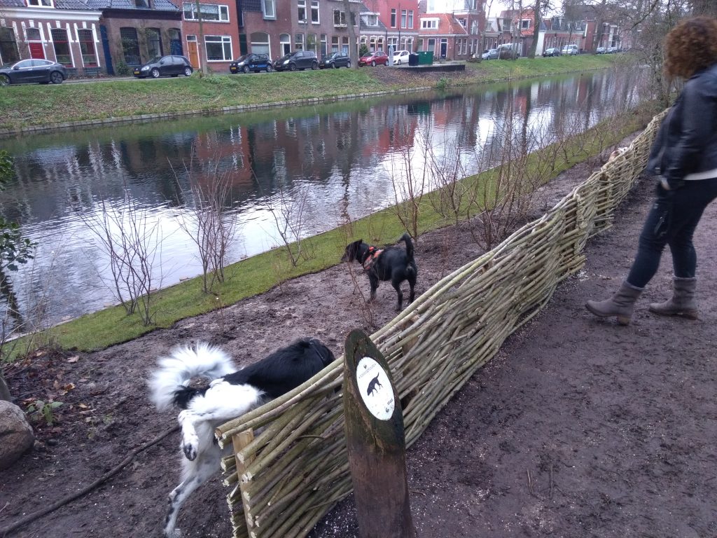 Hoewel … de eerste hondjes die de nieuwe situatie inspecteerden lieten zich niet tegenhouden door het hek.