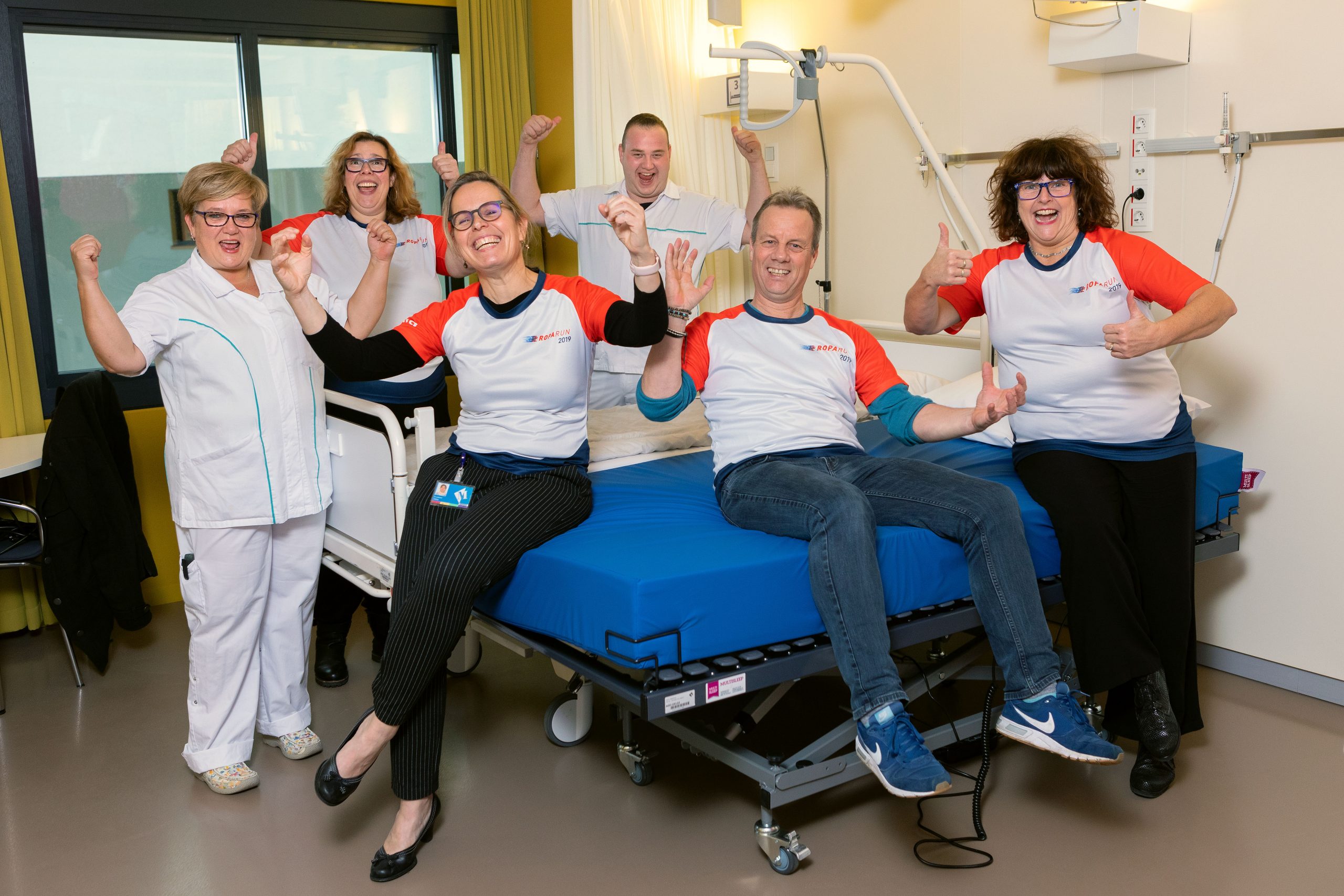 Het Martini Ziekenhuis kreeg de koppelbedden van de Stichting Roparun. Dat is een estafetteloop van 500 kilometer waarbij mensen geld ophalen voor organisaties en projecten die het leven van mensen met kanker kunnen veraangenamen. Medewerkers van het Martini Ziekenhuis lopen al drie jaar mee met de Roparun. Zij liepen vorig jaar ruim 11.000 euro bij elkaar.