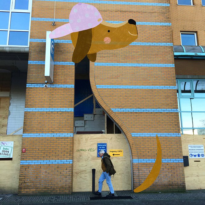 Afgelopen zomer zag illustrator Nienke Siegers een kat in het gat van het UWV-gebouw toen ze op de bus stond te wachten.