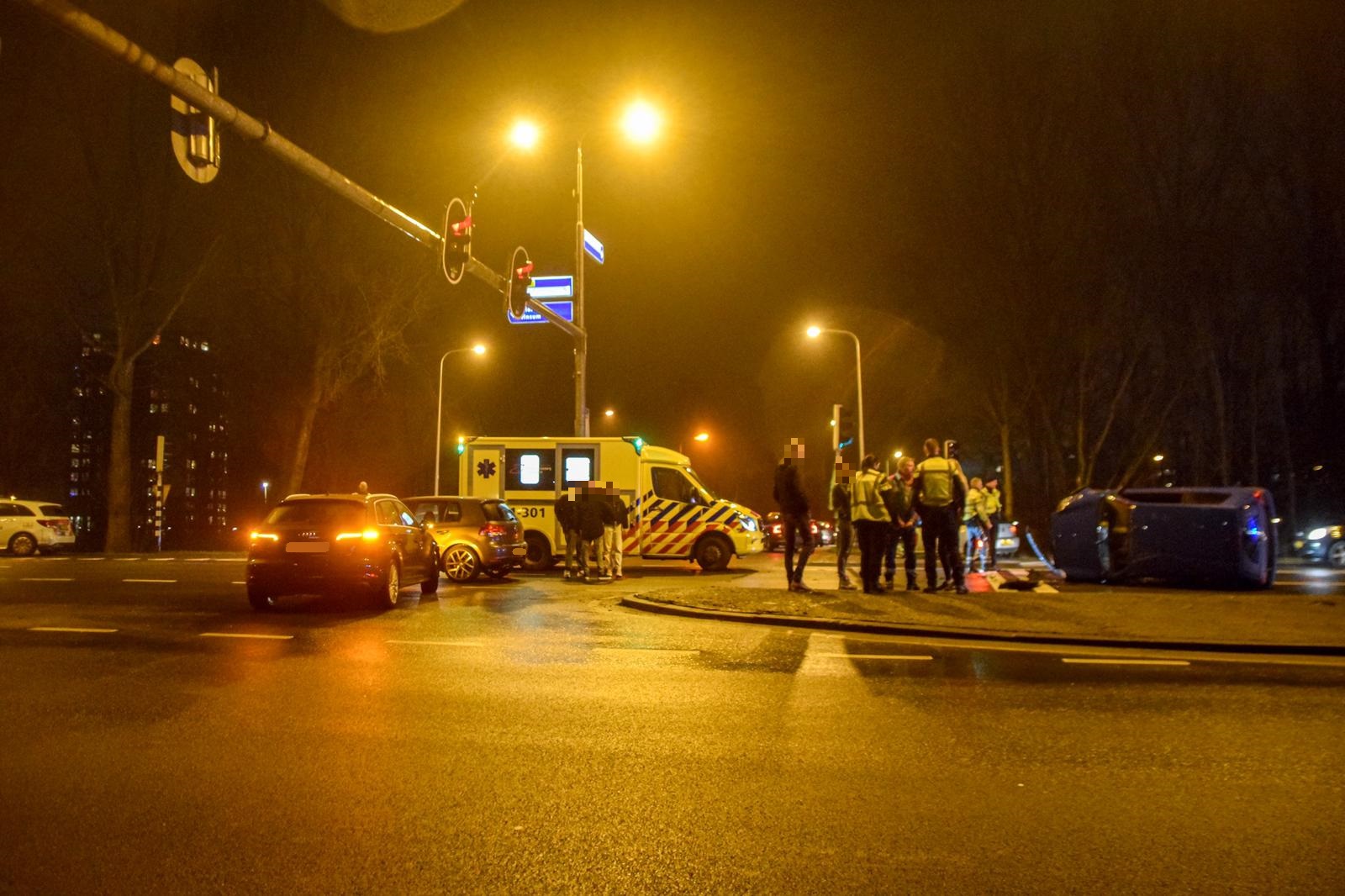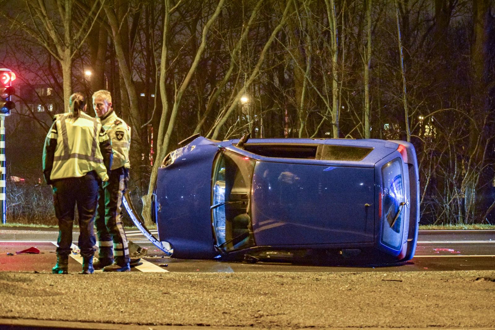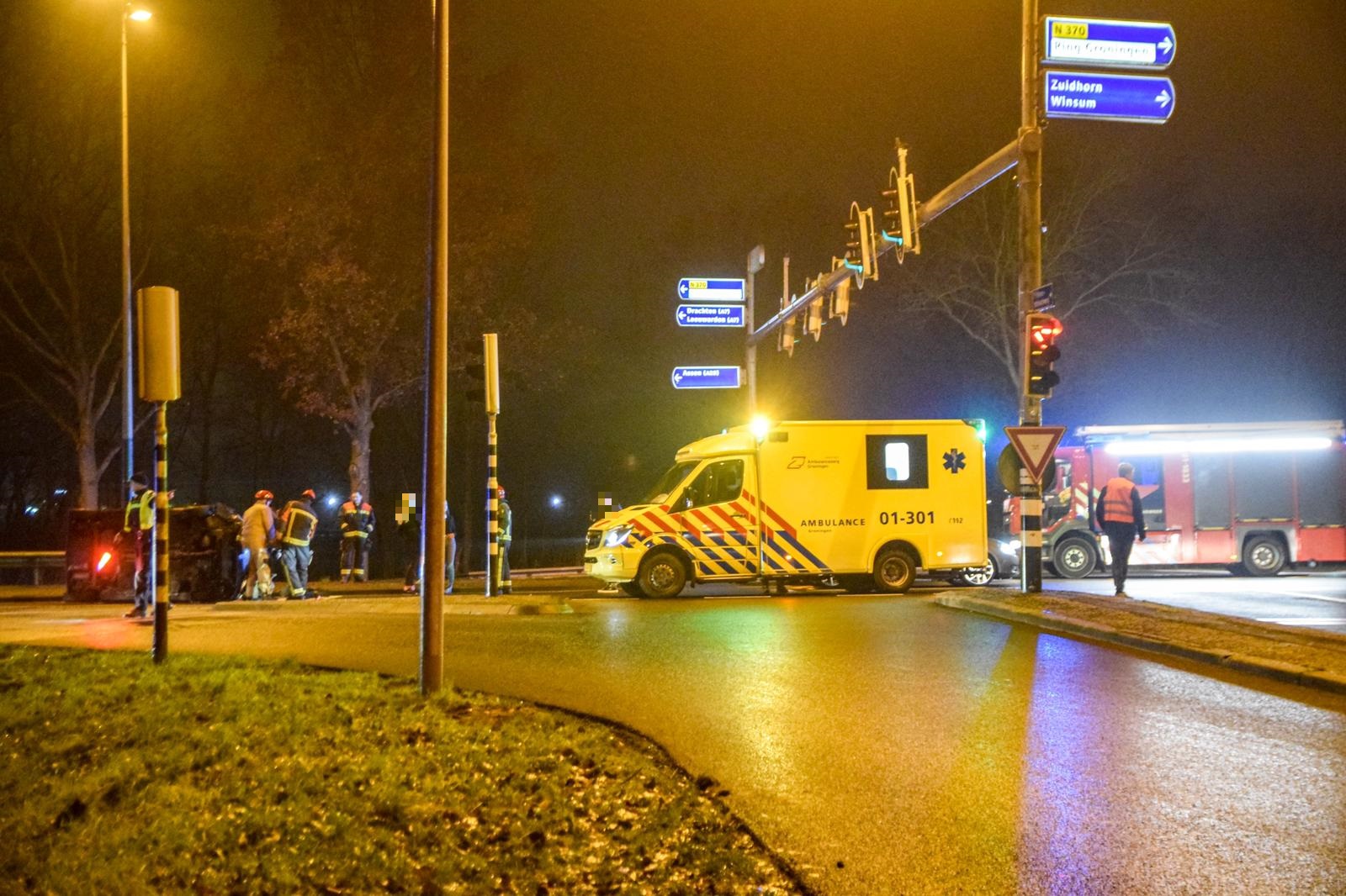 Het ongeluk gebeurde even na de klok van 21.00 uur ter hoogte van de kruising met de Friesestraatweg. “Hoe het ongeluk precies heeft kunnen gebeuren is nog onbekend”, vertelt Ten Cate. “Een blauwe personenauto en een donkergekleurde auto zijn op elkaar gebotst. Door de klap is de blauwe auto gekanteld en op de zijkant terecht gekomen.”