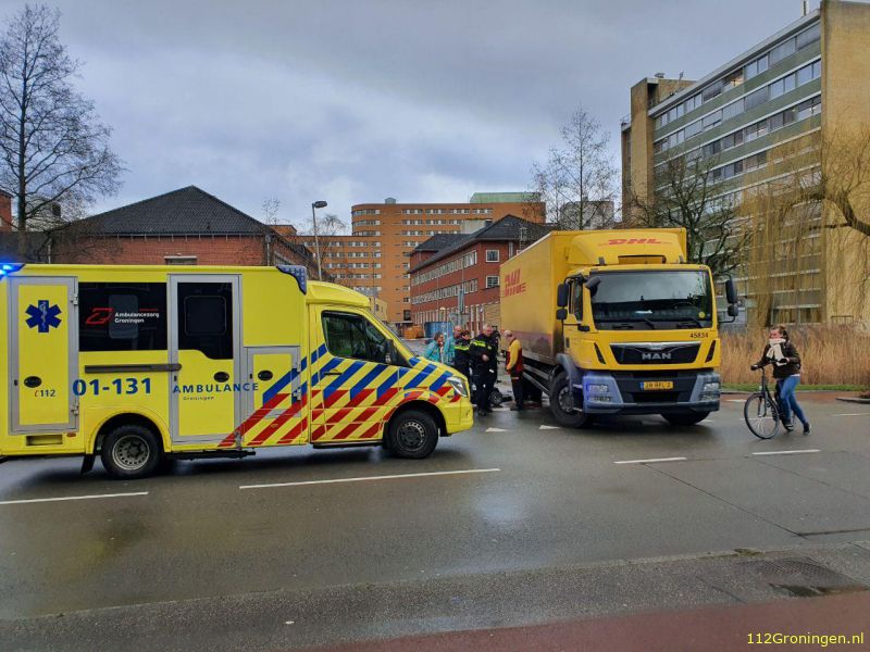Een scootmobiel en een vrachtwagen kwamen woensdag rond het middaguur in botsing met elkaar, aan de Petrus Campersingel. Niemand raakte gewond.