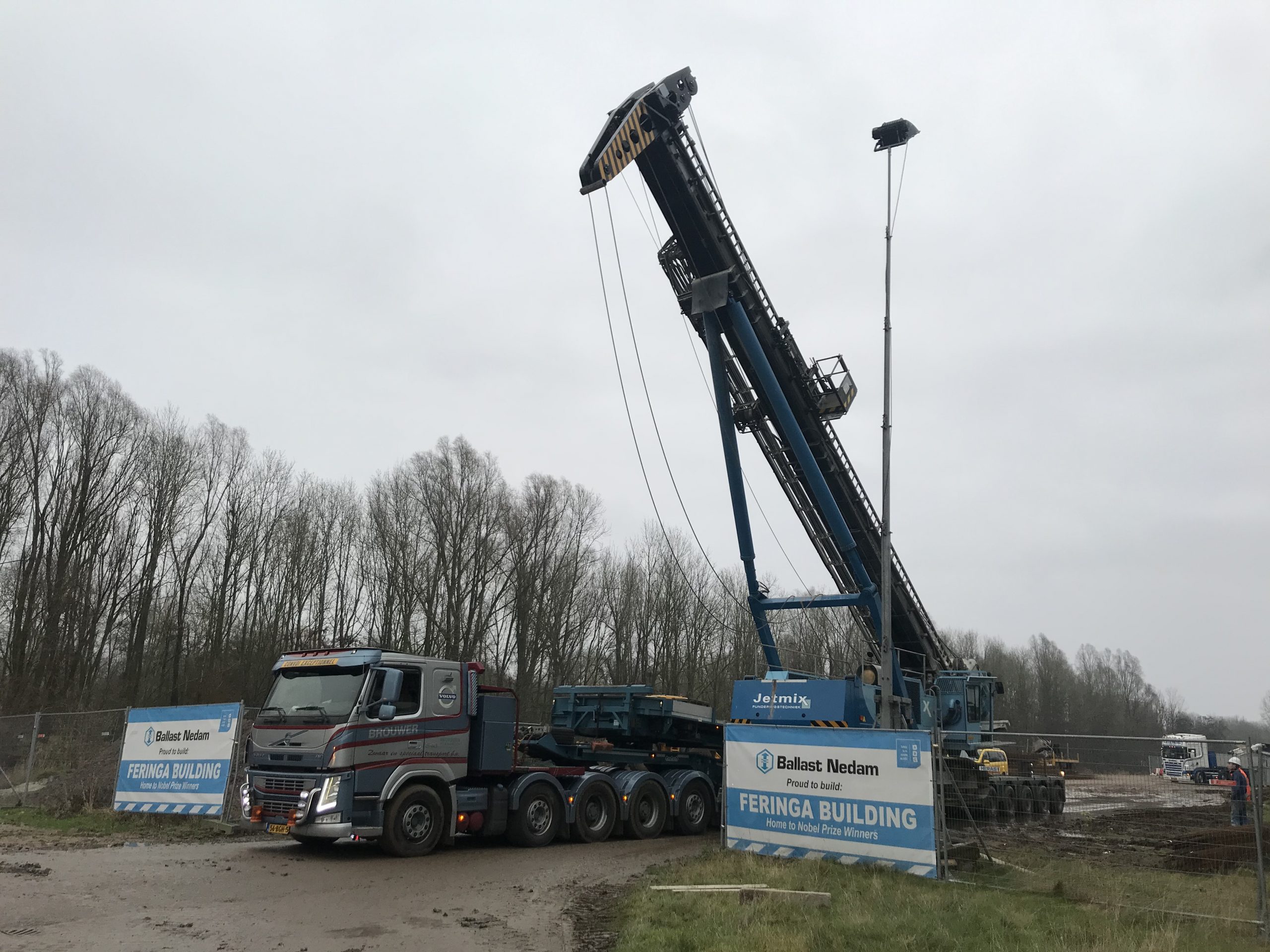 De bouw van de Feringa Building op de Zernike Campus is in volle gang. De Feringa Building is het nieuwe gebouw van de universiteit.