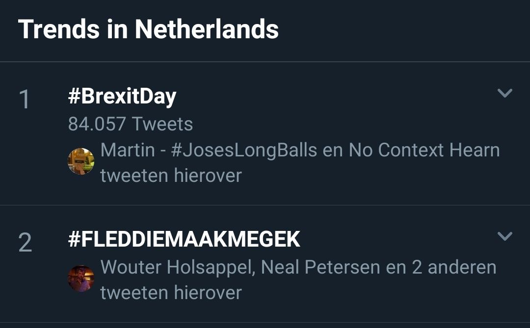 Vrijdagmiddag stond de hashtag voor even net onder #Brexit op nummer 2 trending op Twitter in Nederland.