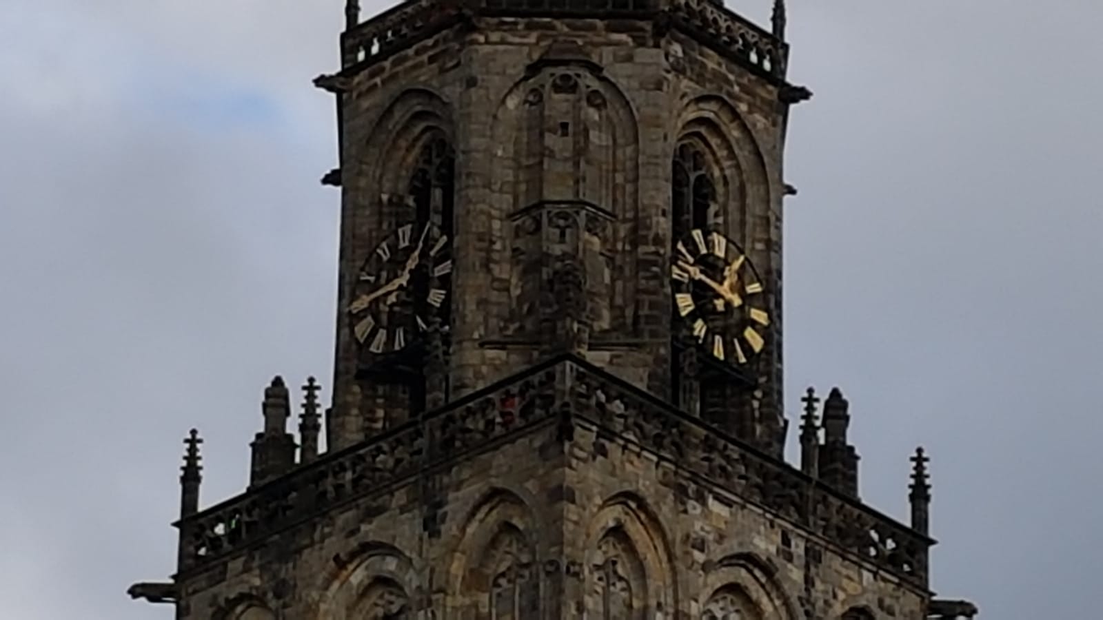 De torenklok wordt gerepareerd omdat deze niet meer de juiste tijd aangeeft. Ook de wijzers zullen opnieuw verguld worden.