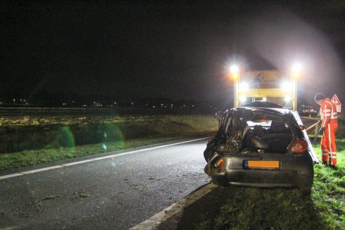 Hulpdiensten waren snel ter plaatse. “Het slachtoffer is in een ambulance behandeld en vervolgens met spoed overgebracht naar het ziekenhuis.” De auto raakte zwaar beschadigd. Die is door een bergingsbedrijf afgesleept. De politie doet onderzoek naar de precieze toedracht.