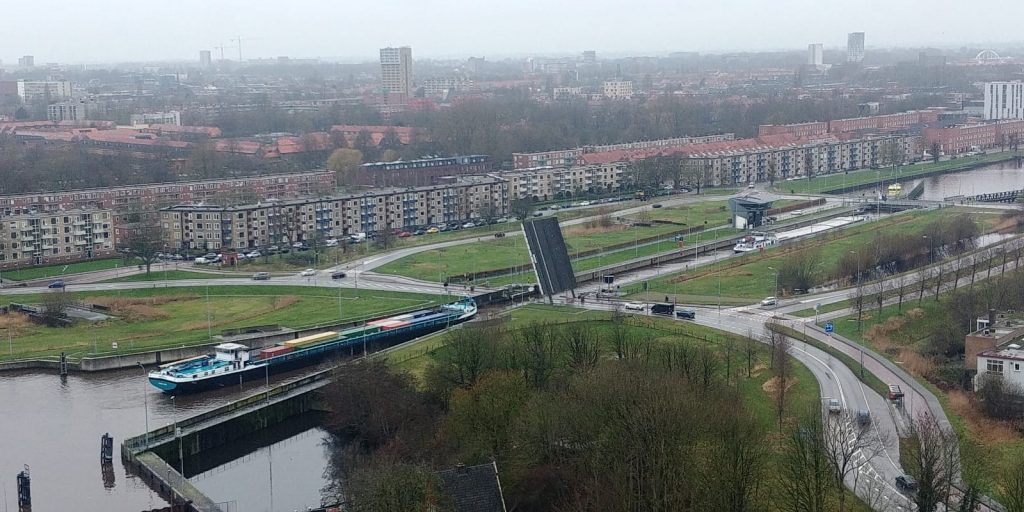 De kapitein van een binnenvaartschip heeft zondagochtend ternauwernood kunnen voorkomen dat zijn schip tegen de sluitende sluisdeuren van de Oostersluis is gebotst. Dat blijkt uit beelden van de website webcam-oostersluis.nl.