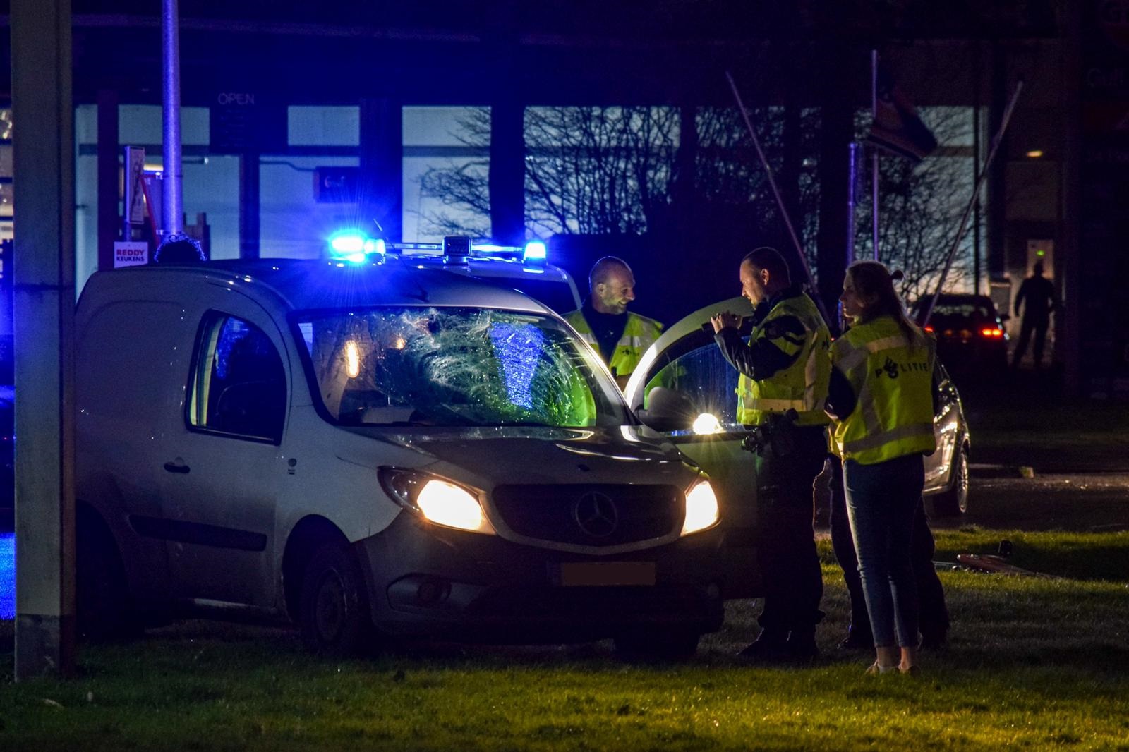 Het bestelbusje liep bij het ongeluk flinke schade op aan de voorruit. De politie doet onderzoek naar de precieze toedracht.