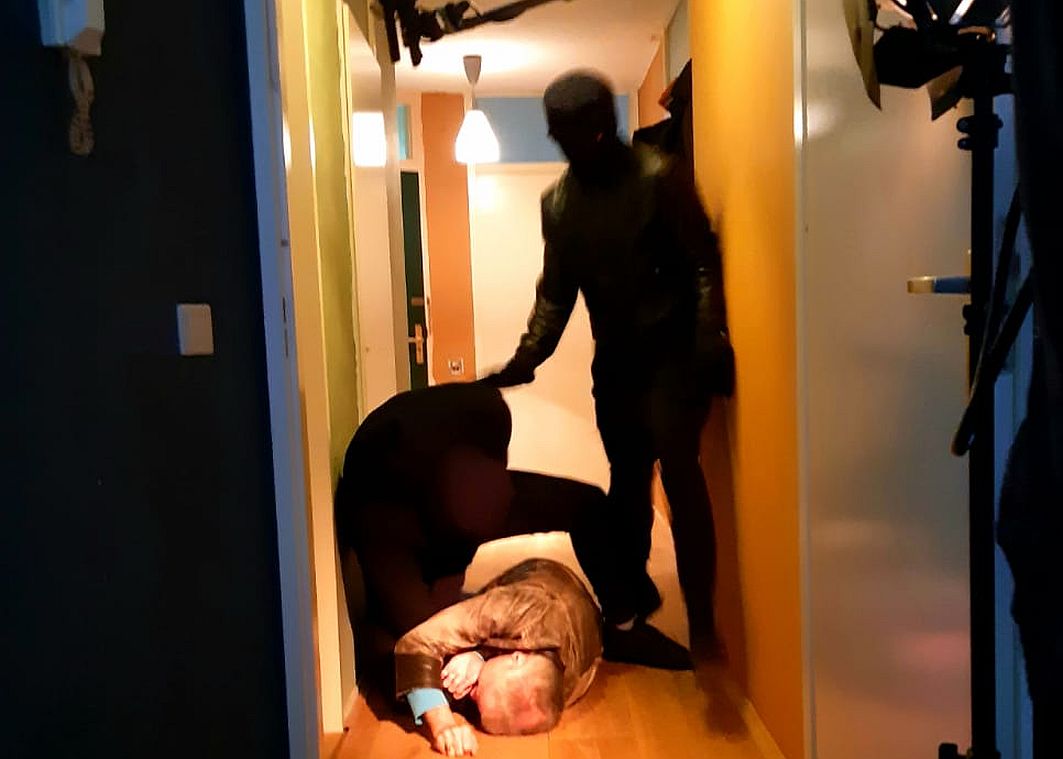 Een foto uit de opnames van de reconstructie van de overval - Foto: Politie