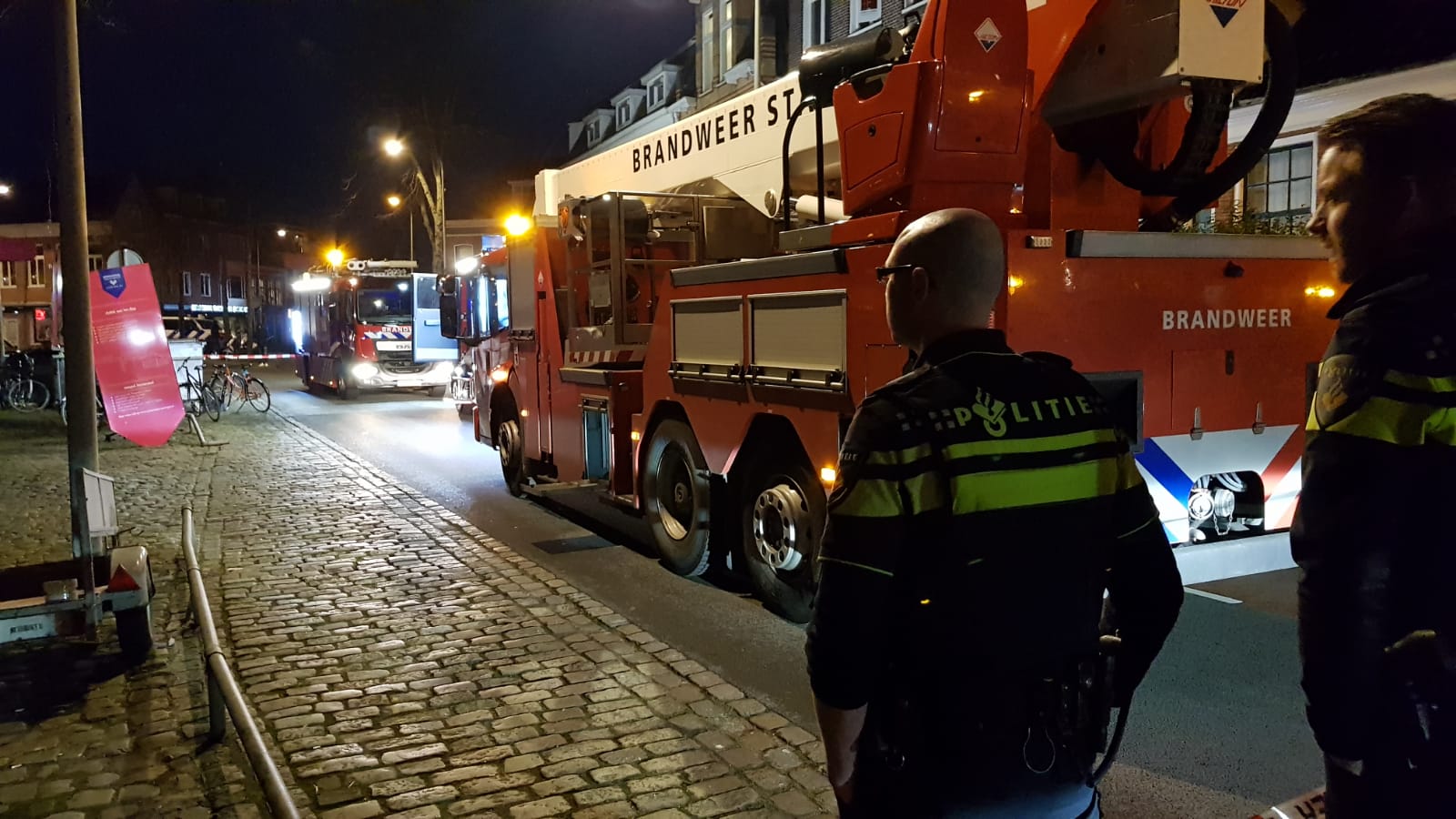 De melding van de brand kwam rond 18.30 uur bij de hulpdiensten binnen waarop in eerste instantie een bluswagen en een hoogwerker ter plaatse werden gestuurd. “Omdat onbekend was of er nog mensen in het gebouw aanwezig waren hebben we vrij snel opgeschaald naar middelbrand”, vertelt een woordvoerder van de brandweer. “Daarop kwam ook een tweede bluswagen ter plaatse.”