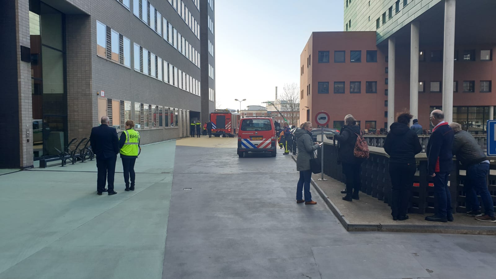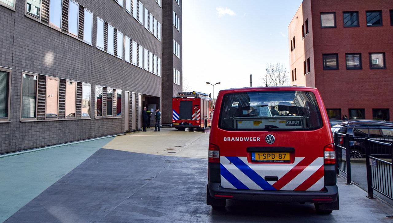 De brandweer was ter plaatse om de brand in de berging te inspecteren. De ontruiming zelf was maar van korte duur.