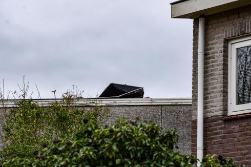 De situatie aan de Jacob Schorerstraat is veilig. Dat laat incidentfotograaf Rick ten Cate weten. “Een uur geleden kreeg de brandweer de melding dat een deel van het dak van een woning was los gewaaid. Behalve een bluswagen kwam ook een hoogwerker ter plaatse. Het redvoertuig is echter niet omhoog geweest. Men heeft besloten het zo te laten, omdat het niet direct gevaar oplevert.
