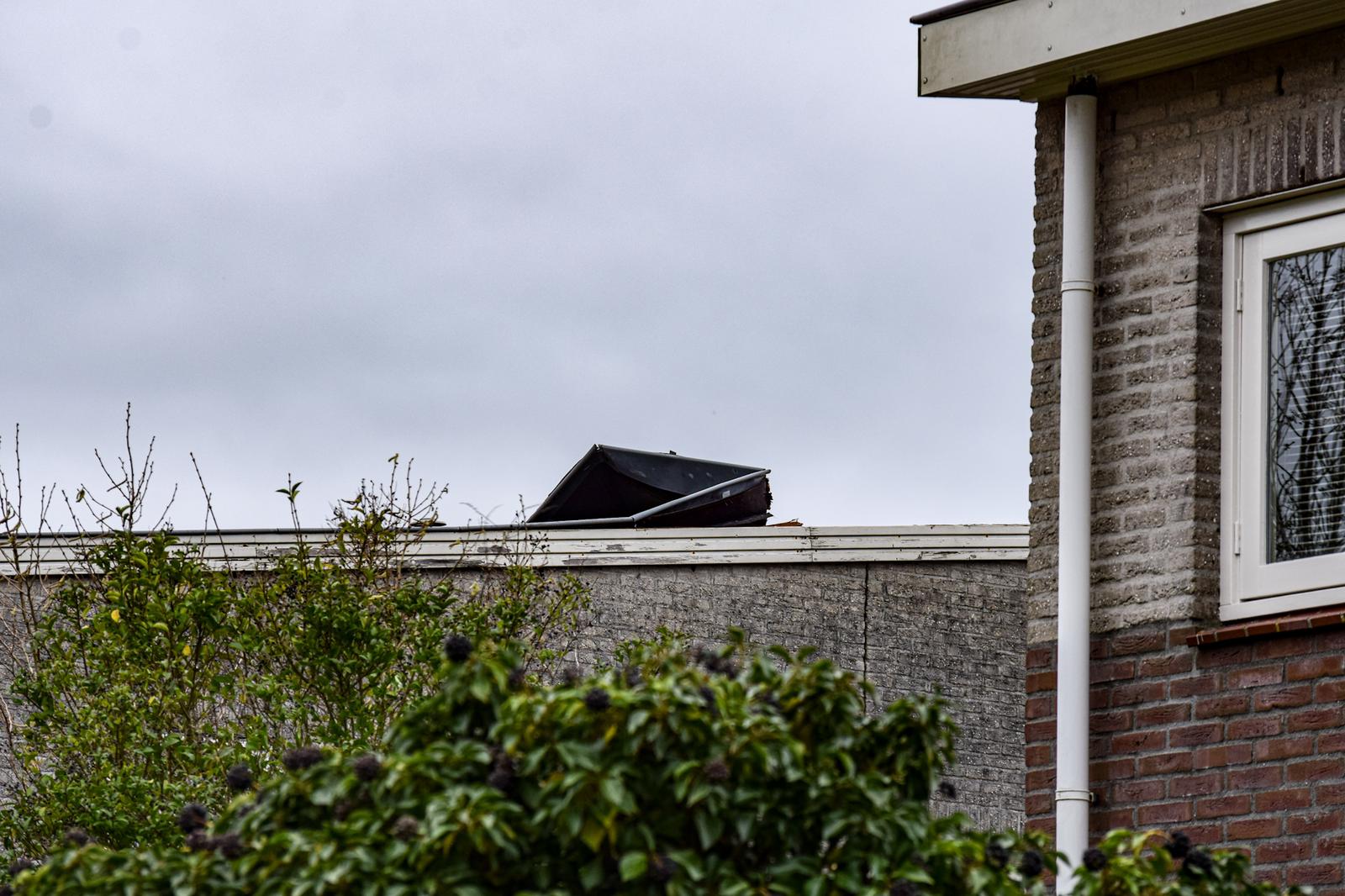 Een deel van een dak van een woning aan de Jacob Schorerstraat is losgewaaid. Foto: Rick ten Cate – tencatefotografie.nl