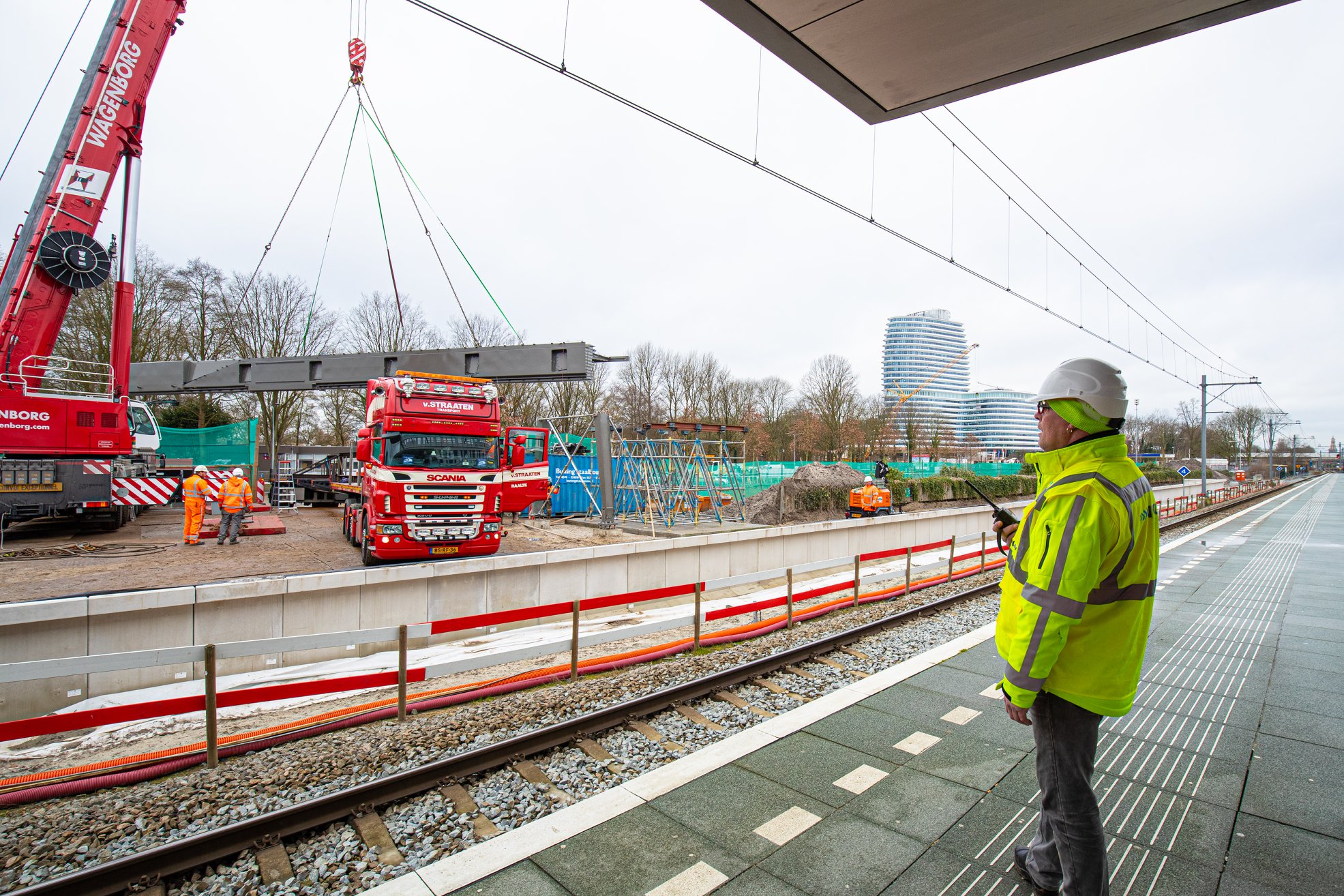 De nieuwe perronkappen van station Europapark liggen op hun plaats. Met uiterste precisie werden maandag de laatste twee delen op hun plaats gelegd.