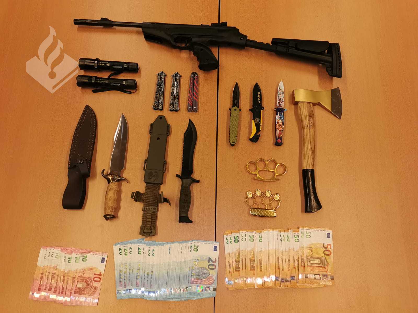 Een kilo drugs, messen, boksbeugels, een bijl, twee stroomstootwapens en cash geld. Dat is de opbrengst van een inval door de politie in een woning in de Schilderswijk in Groningen. De politie bracht de informatie over de inval maandagmiddag naar buiten.