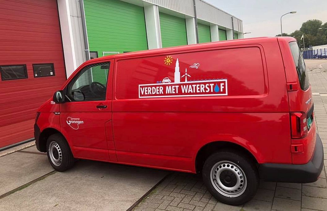 Na Groningen zullen ook andere gemeenten in Noord-Nederland de waterstofauto’s krijgen. De gemeente Noordenveld bestel bijvoorbeeld exemplaren van het grotere broertje van de VW Transporter, de Crafter.